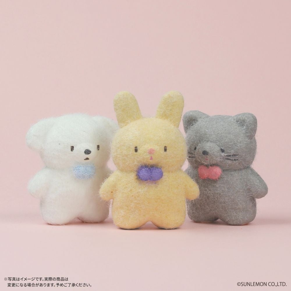 実際のぬいぐるみのカラーに合わせたねこ・うさぎ・くまと、