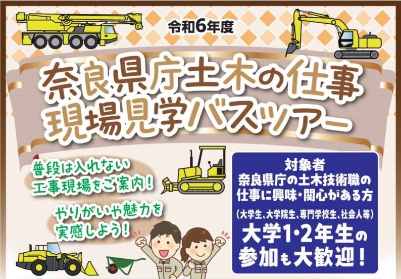 奈良県庁土木技術職が関わる工事現場等を見学していただくバスツアーを開催します。
