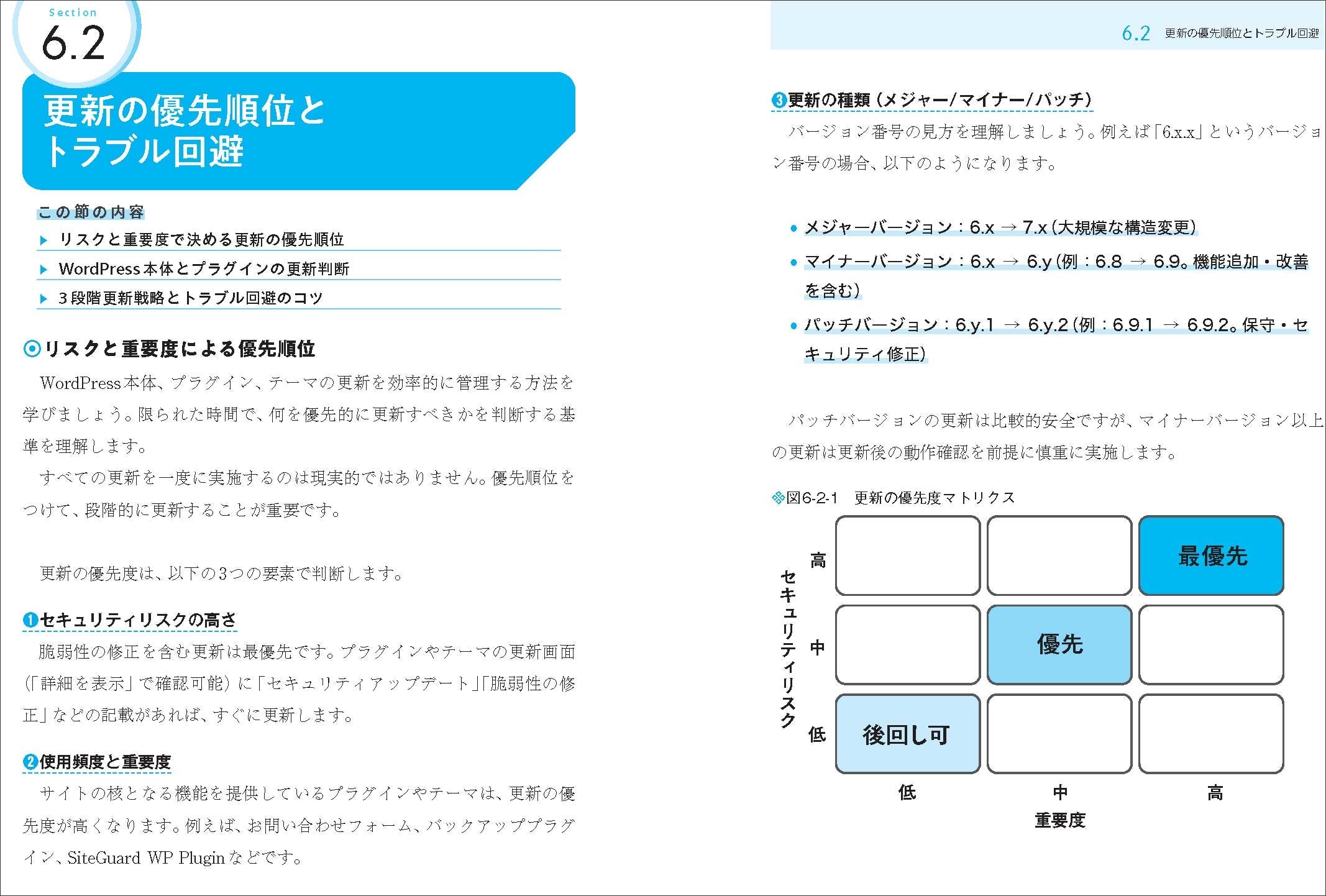 「制作や運営はできるけれど、セキュリティはよく分からない」といった不安を抱える方に向けて、導入時の基本対策、ログインやユーザー管理、プラグインやテーマの運用といった、実務で必ず直面する場面ごとに、画面写真や図解を使って具体的に解説しています。