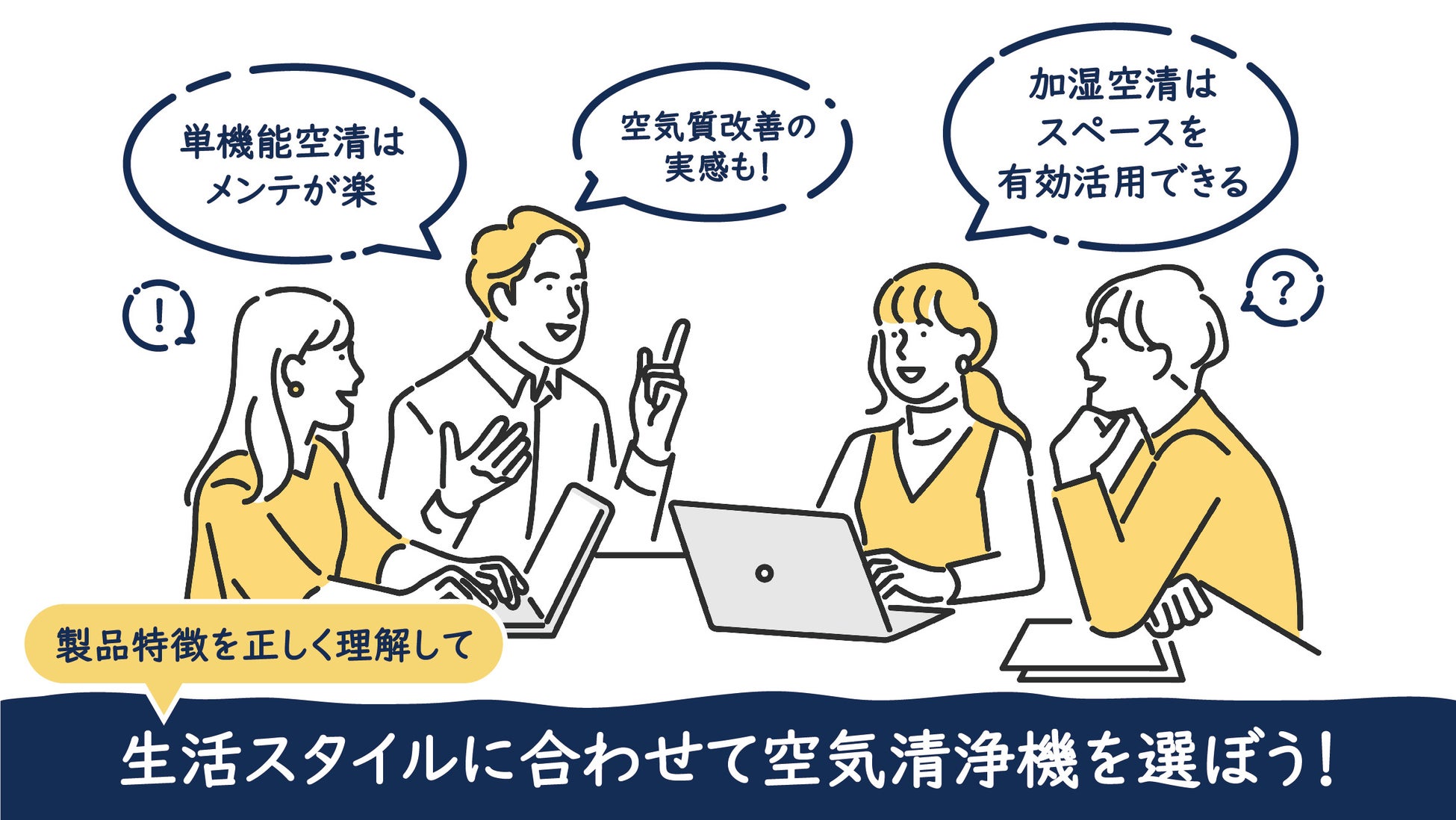 単機能空清はメンテナンス性や清浄性能を重視、加湿空清はスペースの有効活用や季節により加湿を使用したい