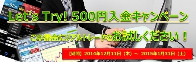 SBI FXトレードが提供する外国為替証拠金取引「SBI FXTRADE」は、2014年12月11日(木)より1度もご入金をいただいていないお客様を対象に500円入金キャンペーンを実施いたしました。