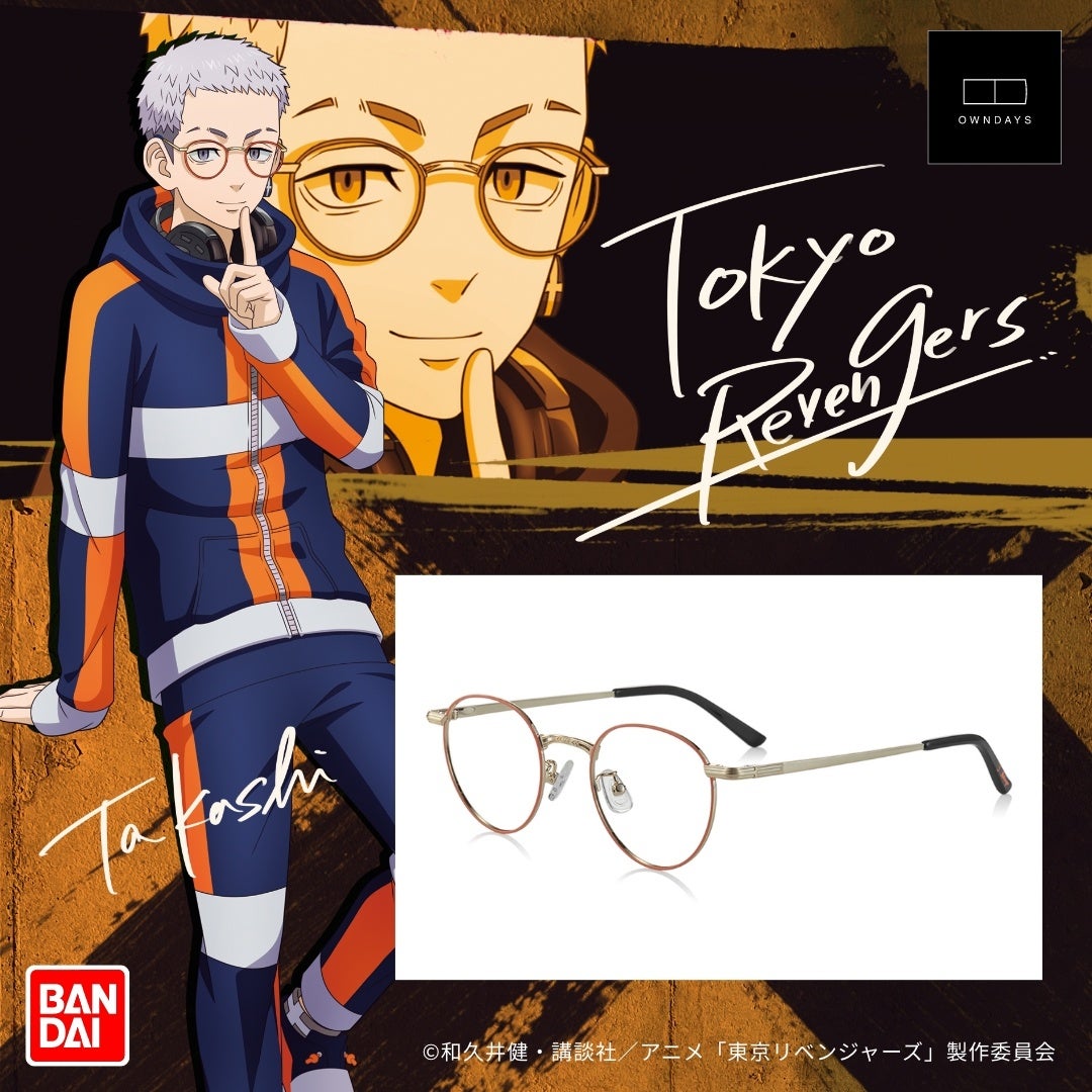 メガネ・サングラスの製造販売を手掛けるOWNDAYS株式会社(本社:沖縄県那覇市、代表取締役社長:田中修治)は、大人気TVアニメ『東京リベンジャーズ』より、花垣武道や佐野万次郎ら、6人のキャラクターたちをイメージしたBANDAI東京リベンジャーズメガネコレクションの取り扱いを開始します。メガネは全てPCレンズ(度なしブルーライトカット)を標準搭載しており、本アイテム限定で描き下ろされたイラストが入ったメガネ拭きと特製メガネケースをセットにしてお届けします。本日2023年1月27日(金)から3月31日(金)までOWNDAYSオンラインストアにて期間限定で受注販売を行います。