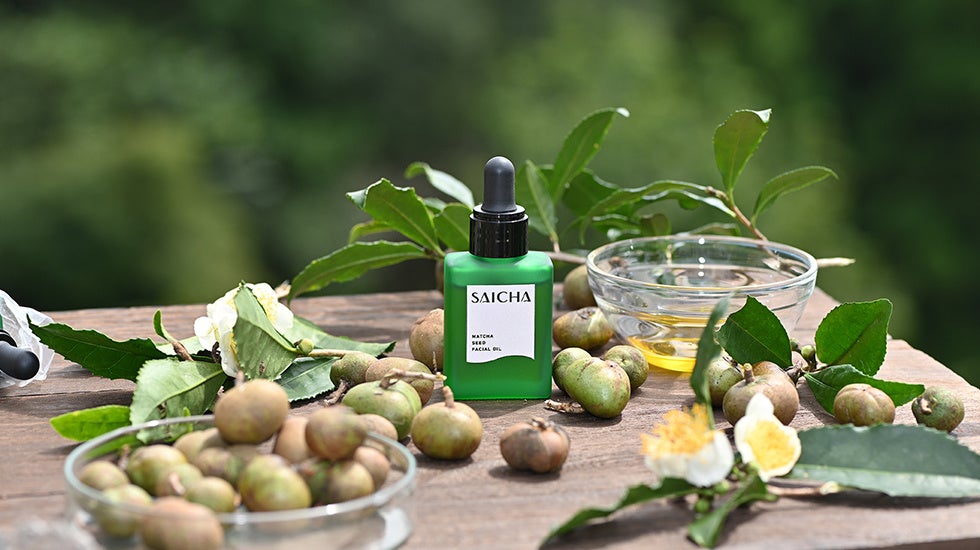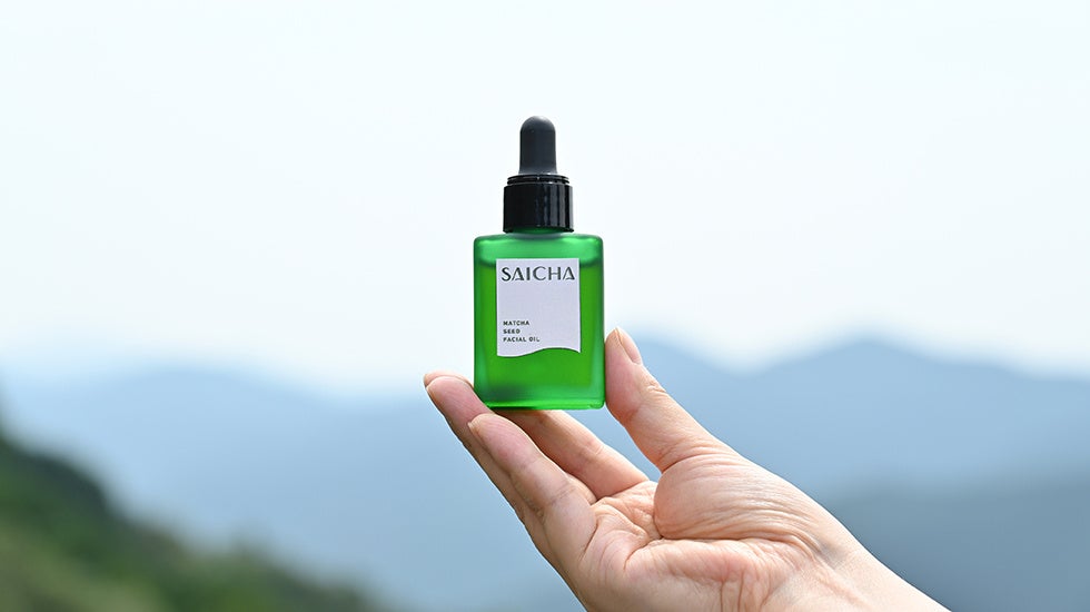 「采茶~SAICHA(サイチャ)」は、日本一のお茶の産地・静岡県の耕作放棄地に実った「茶の実」を使用し、2粒から1滴しかとれない希少で、かつ一番搾りを使用した、サステナブル&ナチュラルスキンケアブランドです。