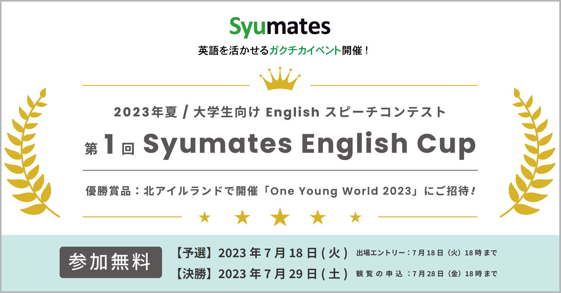 この度、「Syumates」のガクチカイベント第一弾として、7月29日(土)に大学生を対象にした英語スピーチコンテスト「第1回 Syumates English Cup」」を開催することが決定しました。学生が自身の語学力やプレゼンテーション力を試せる貴重な場であり、また客観的な評価を得られることで、グローバル企業に興味がある学生や英語を使って働きたい学生にとって、就職活動で「ガクチカ」としてアピールできるイベントです。優勝賞品として、優勝者を2023年10月に北アイルランドで開催される国際サミット「One Young World 2023」にご招待します。