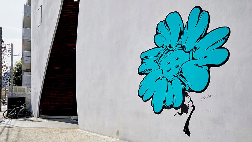 ▲PORTAL POINT HARAJUKU ANNEXの外壁に描かれたボタンフラワーはアーティストSHUN SUDOの作品