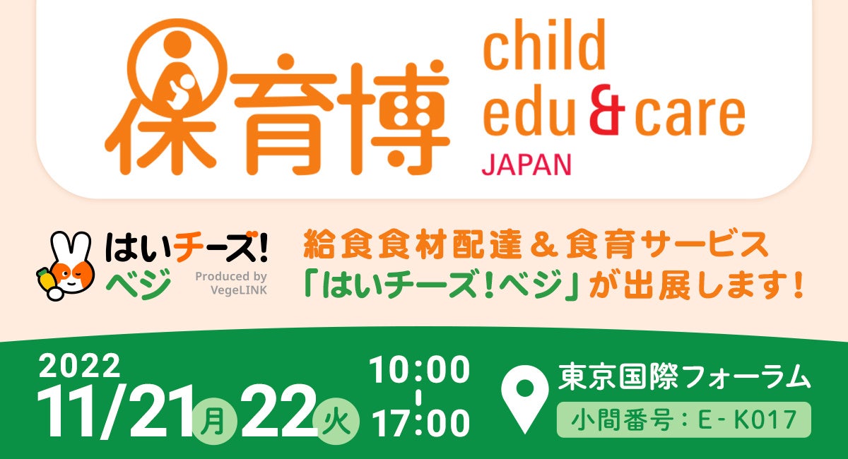 「保育博2022」で当社は、給食食材配達&食育の新サービス「はいチーズ!ベジ」に加え、インターネット写真販売「はいチーズ!フォト」をはじめとする総合保育テックサービス「はいチーズ!」シリーズをご紹介します。また、出展者プレゼンテーションとして、農作物収穫などの自然体験が子供たちに与える影響について、Momo統合医療研究所 医師・医学博士 木村理砂氏と、当社と業務提携する株式会社ベジリンクの取締役社長 塚田祥世が対談を行います。