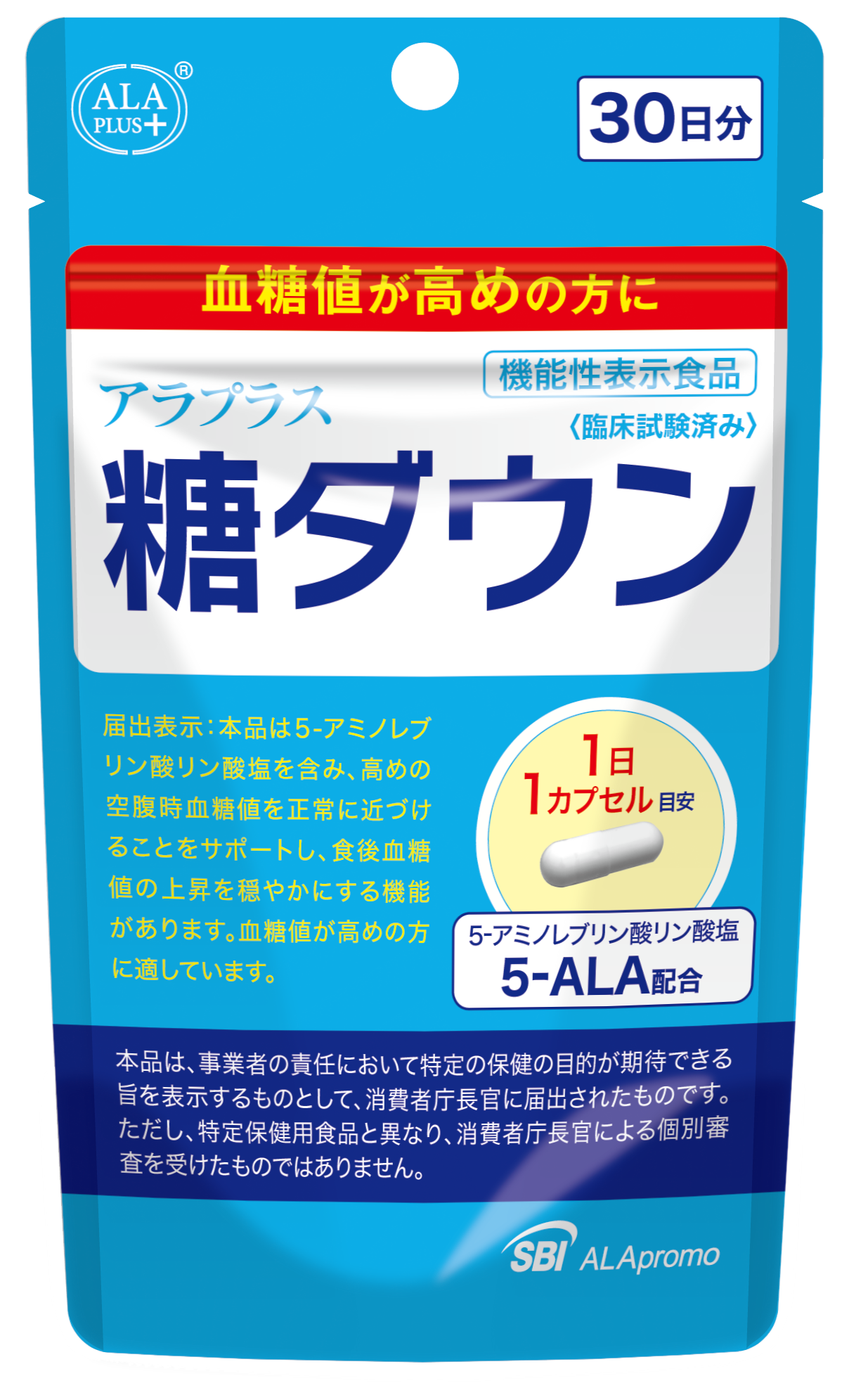 本品は5-アミノレブリン酸リン酸塩を含み、高めの空腹時血糖値を正常に近づけることをサポートし、 食後血糖値の上昇を穏やかにする機能があります。血糖値が高めの方に適しています。 |