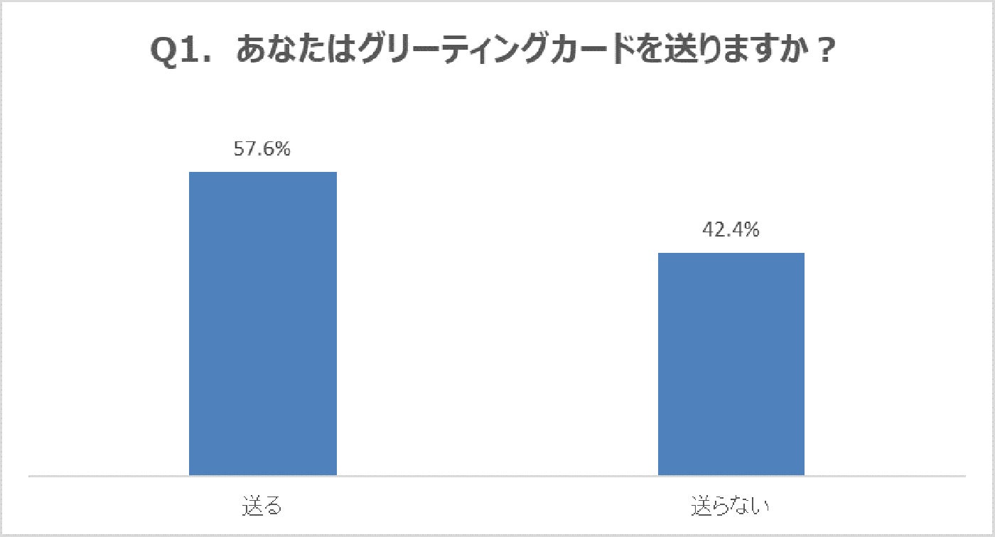 「友人」と答えたのが56.1%で断トツの1位。疎遠になった友人に送りたい方が多くみられました。次いで「配偶者」「子供」「親」「兄弟姉妹」という結果に。日常の感謝の気持ちをカードで伝えたいという方も多いようです。