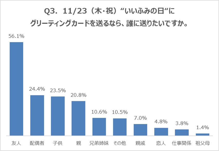 ●11/23(いいふみの日)にグリーティングカードを送るなら、「友人に送る」が最も多い結果に