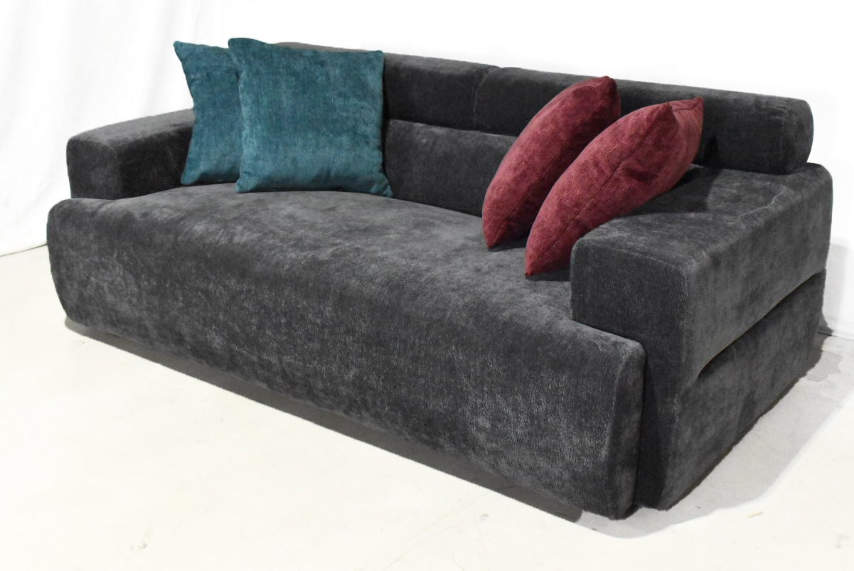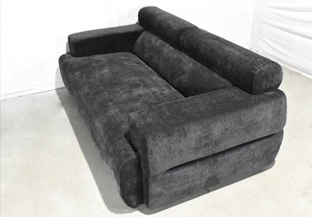 直線を活かした、長方形のフォルムに平面パーツをアームとして付けたような、北欧風シンプルなデザインと、イタリアモダンのテイストが融合した、存在感と高級感のあるソファです。