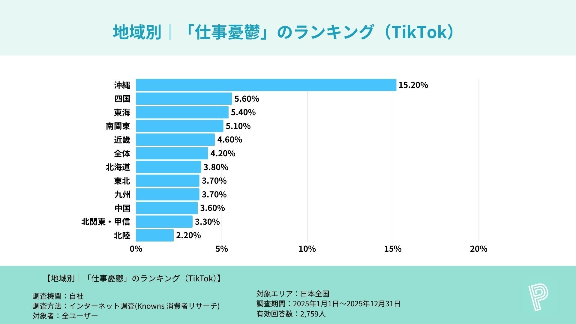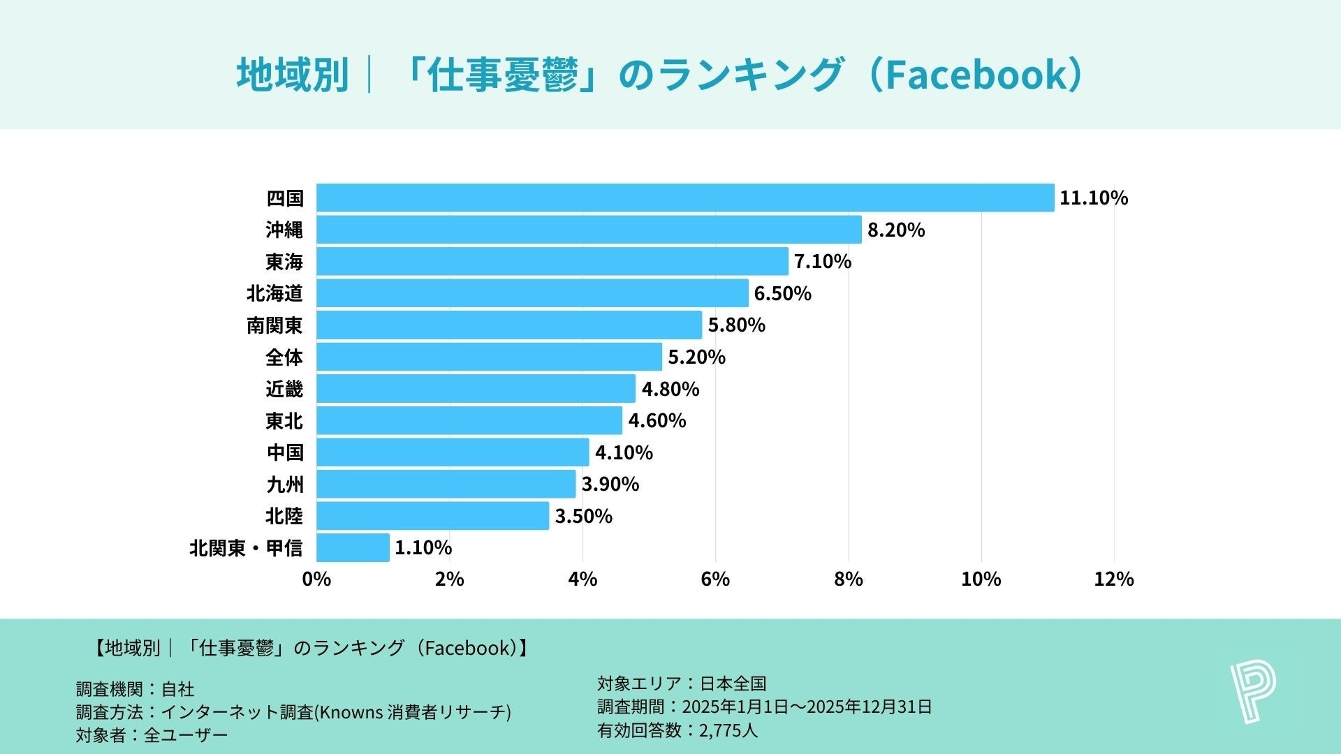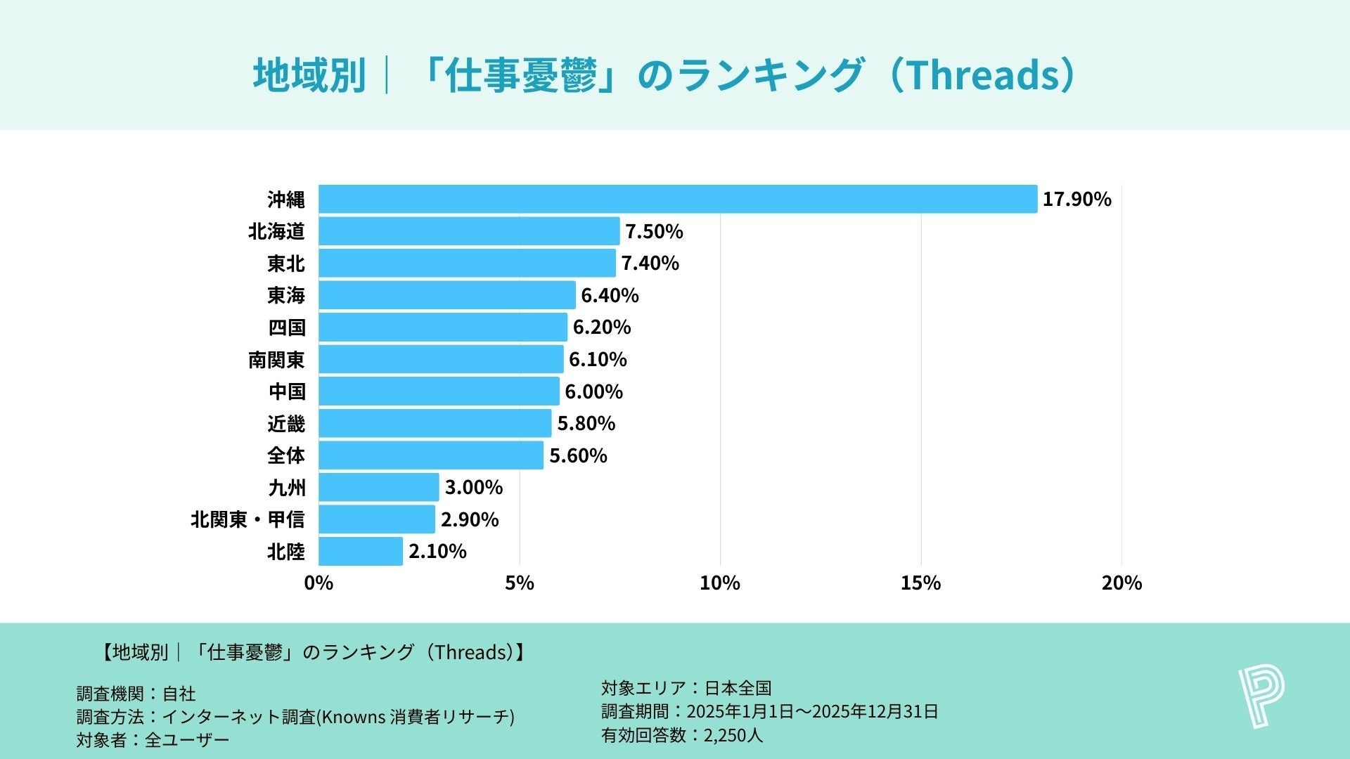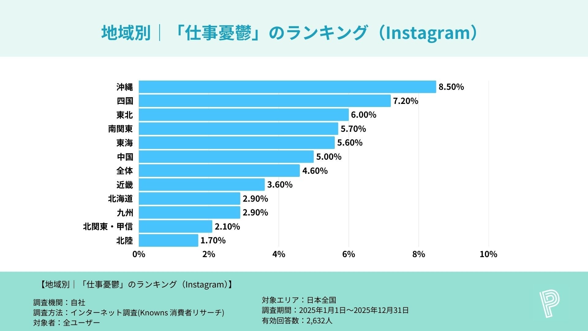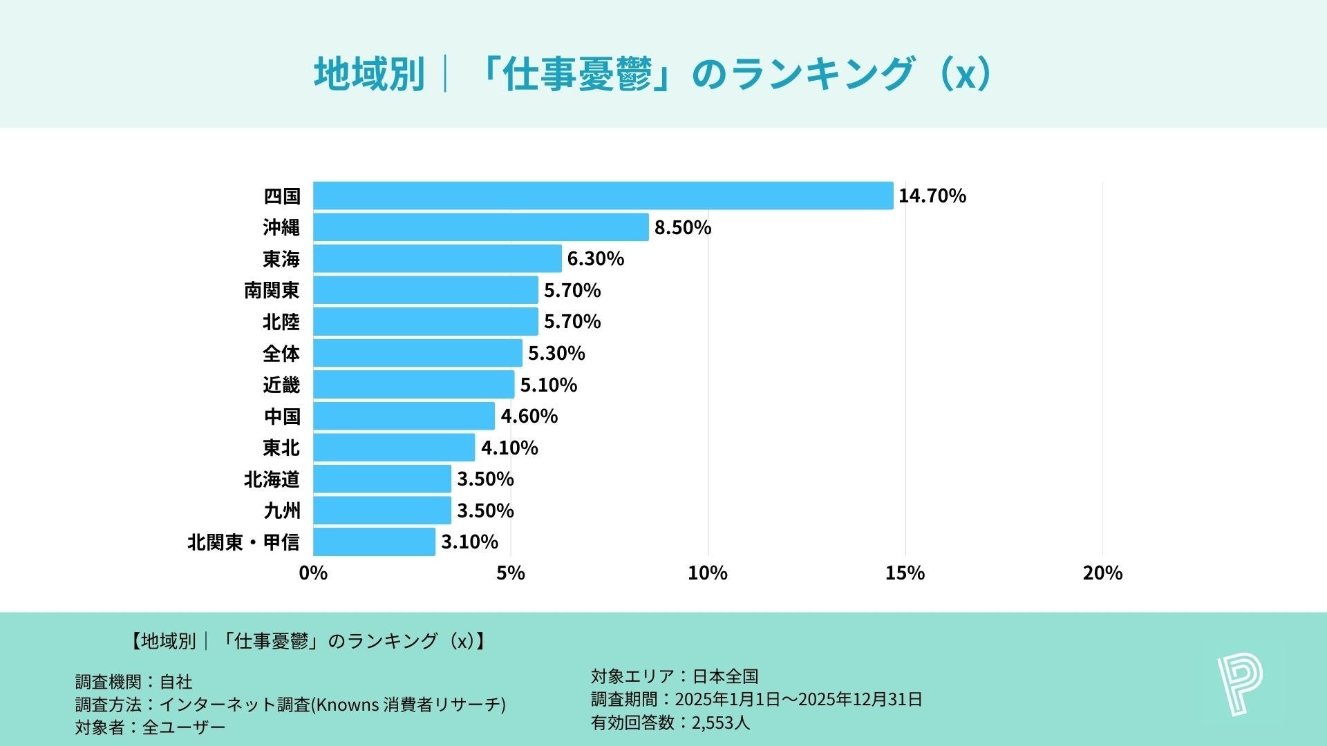 調査名 :主要SNSアプリ利用者における「仕事憂鬱」割合に関する地方別比較調査