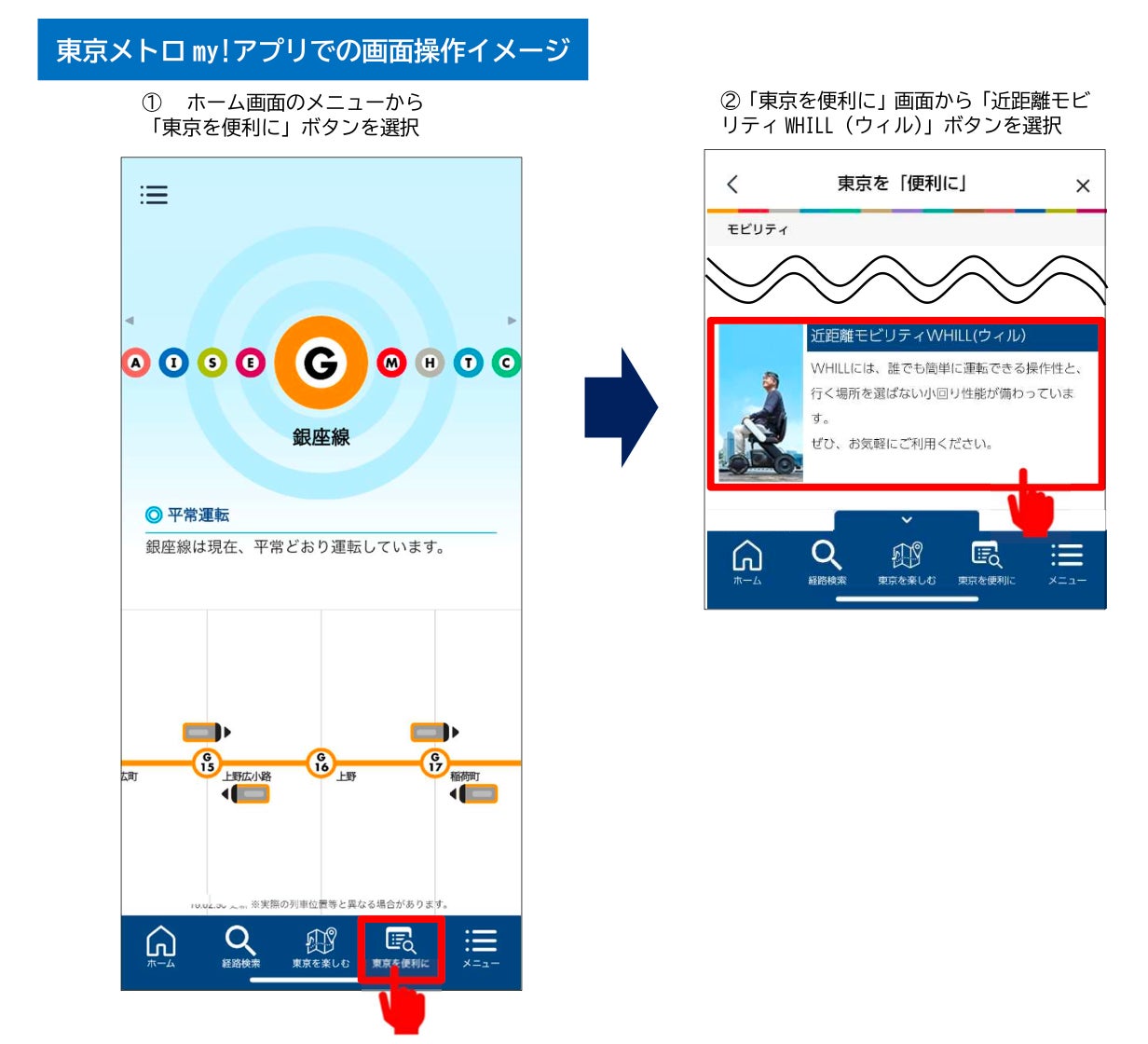 東京メトロの公式アプリから近距離モビリティWHILLの購入・レンタル申し込みが可能に!