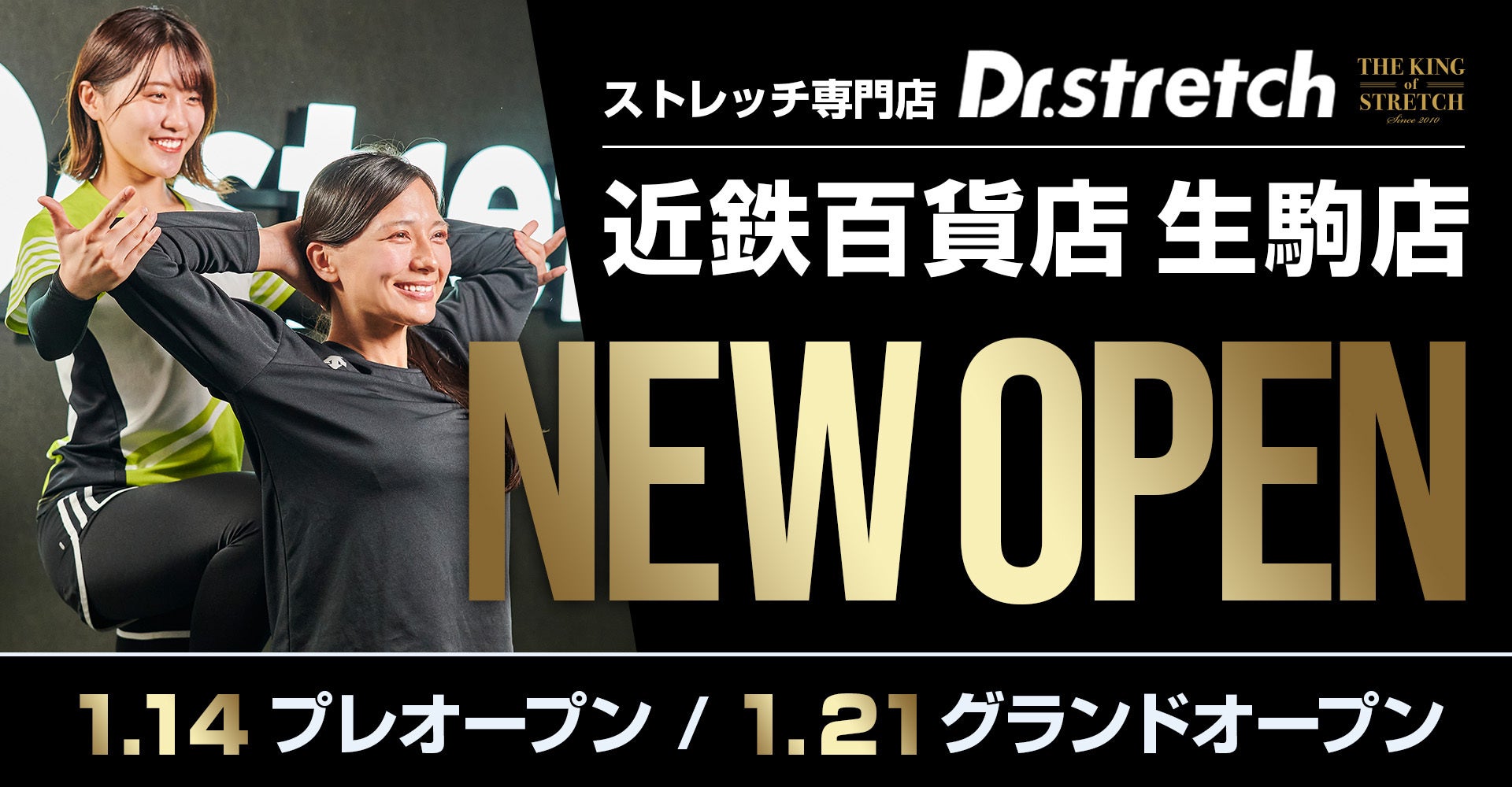 界210店舗以上で独自技術「コアバランスストレッチ」を提供するストレッチ専門店「Dr.stretch」(株式会社nobitel、本社:東京都新宿区、代表取締役:黒川 将大)は、1月14日に近鉄百貨店生駒店をオープンすることをお知らせいたします。