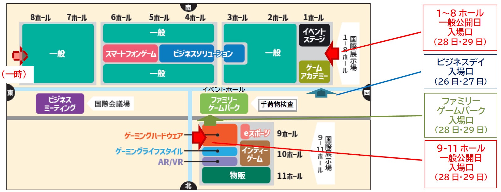 ・ ファミリーゲームパークは、イベントホール北側の専用入場口からご入場いただけます。