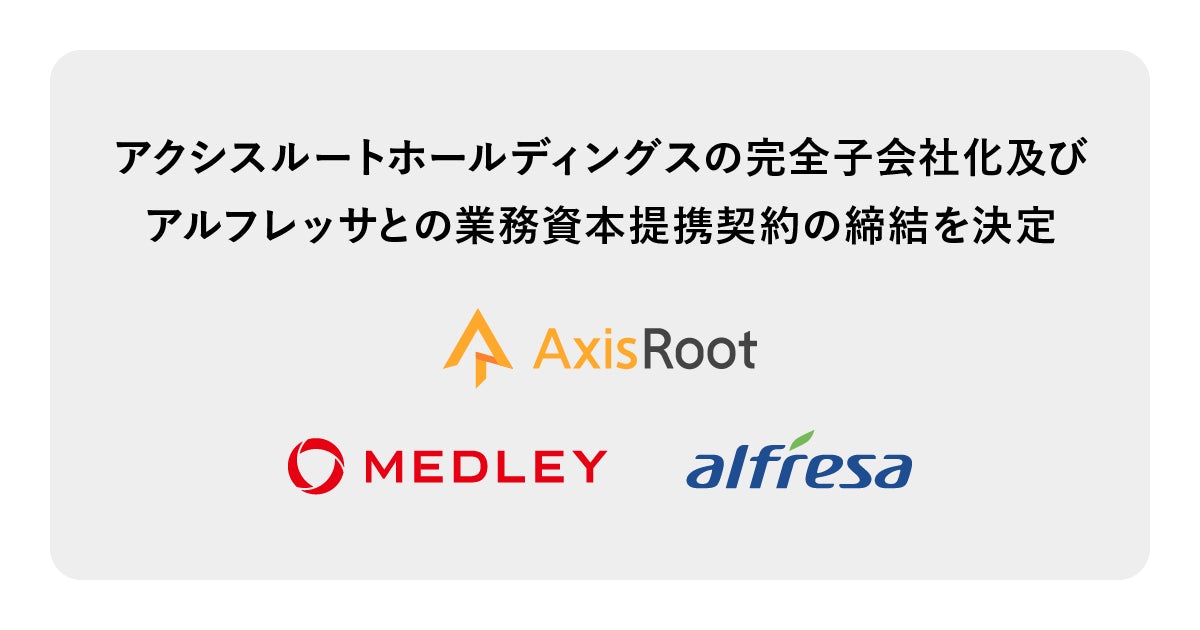 株式会社メドレー(本社:東京都港区、代表取締役社長:瀧口 浩平、以下メドレー)は、アクシスルートホールディングス株式会社(本社:東京都千代田区、代表取締役社長:近藤 一馬、以下アクシスルートホールディングス)を完全子会社化することを決定しました。