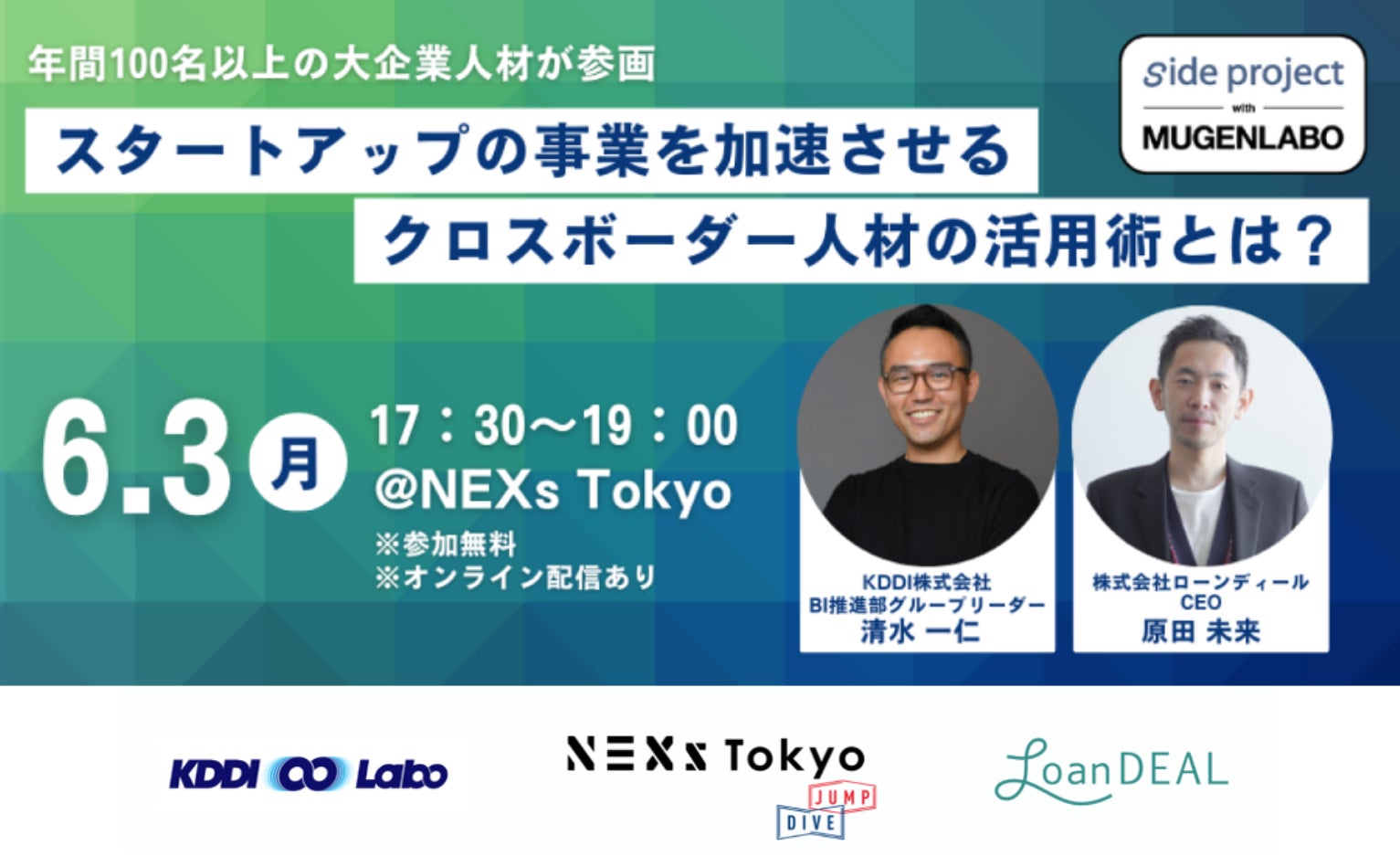 6/3(月)開催!KDDI ∞ Labo x NEXs Tokyo × LoanDEAL共催「スタートアップの事業を加速させる クロスボーダー人材の活用術とは?」