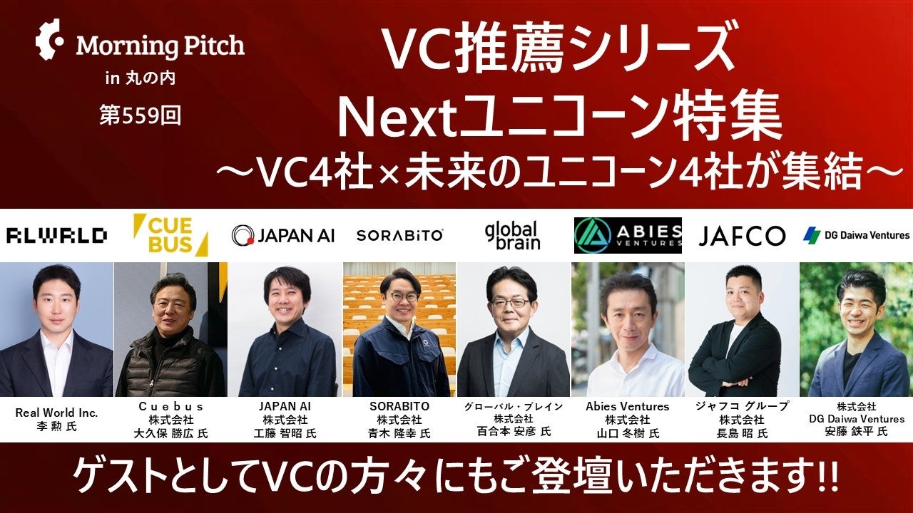 イベント名:第559回 Morning Pitch ~VC推薦シリーズ Nextユニコーン特集~