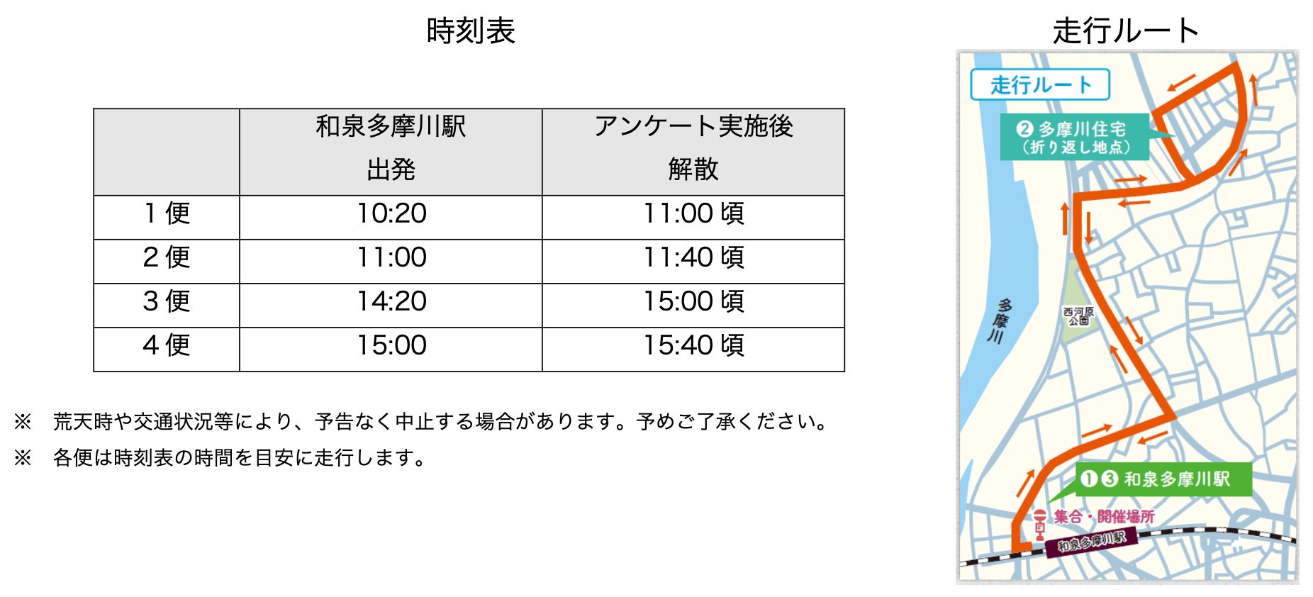 (3)ルート:和泉多摩川駅出発後、多摩川住宅を経由し、和泉多摩川駅に到着