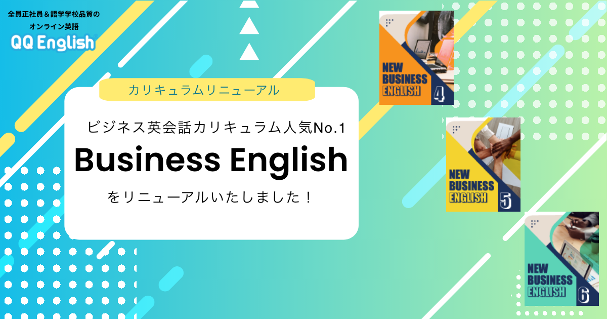 株式会社QQ English (本社:東京都渋谷区、代表取締役:藤岡 頼光)は、提供するオンライン英会話サービス「QQ English」のビジネス英会話カリキュラム「Business English リニューアル版」が2022年10月25日(火)より新しくリリースされることをお知らせいたします。
