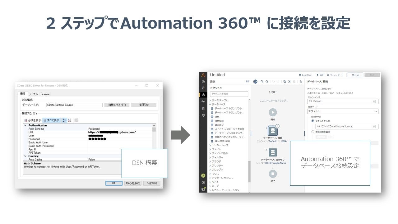 - kintone データのODBC 連携記事:https://www.cdata.com/jp/kb/tech/kintone-odbc-automation360.rst