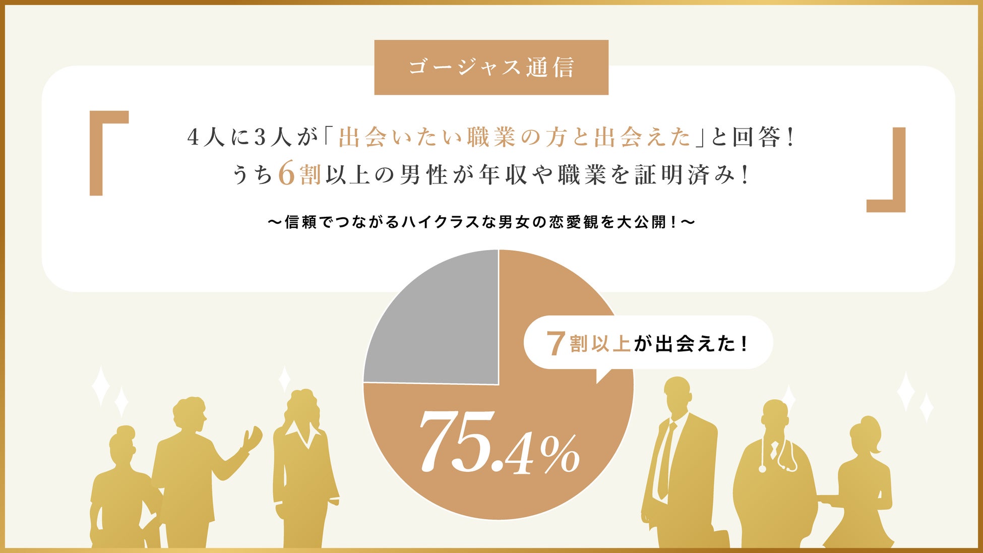 【ゴージャス通信2025年3月】最新恋活・婚活トレンド調査!4人に3人が「出会いたい職業の方と出会えた」と回答!うち6割以上の男性が年収や職業を証明済み!