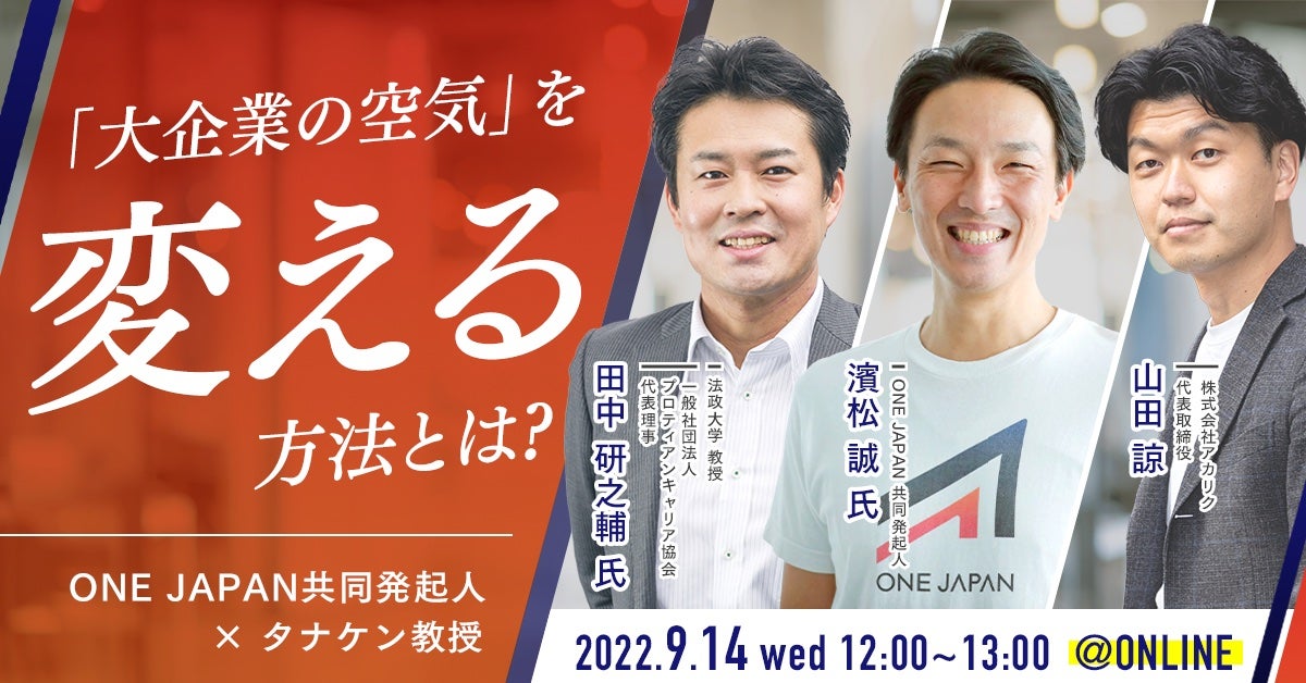 【ONE JAPAN共同発起人 × タナケン教授】「大企業の空気」を変える方法とは?|9月14日(水)開催