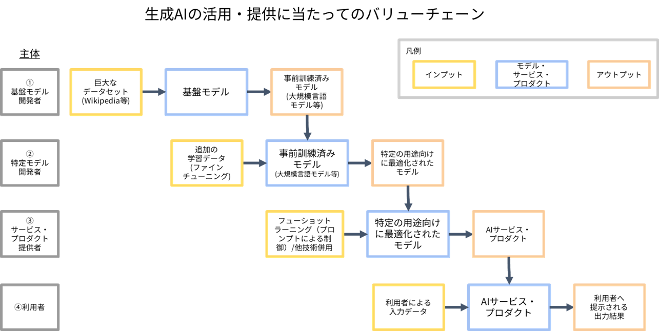 MICINは、本ガイドラインの主執筆ならびに、レビューを担当し、「生成AIにおけるバリューチェーン」図表の提供を行いました。