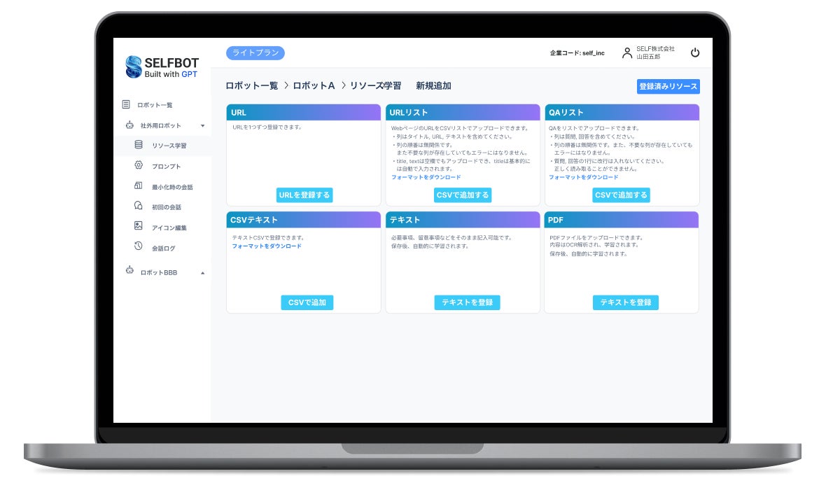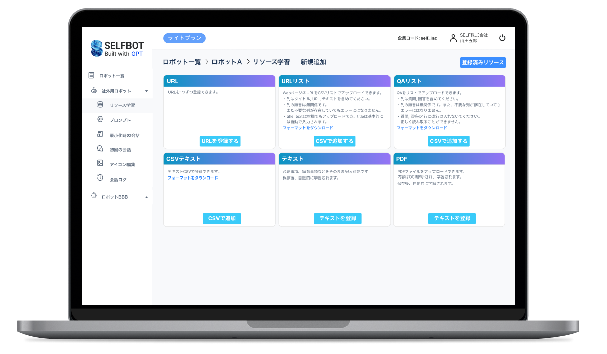 この度、ChatGPT+自動学習機能を簡単に設定できるSELFBOTの管理画面を開発、リリースいたしました。