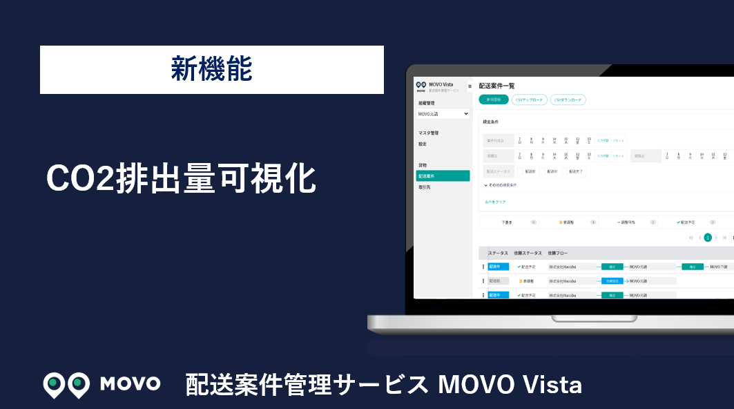 サプライチェーン全体のCO2排出量可視化に向け、配送案件管理サービス MOVO VistaにCO2排出量可視化機能を追加