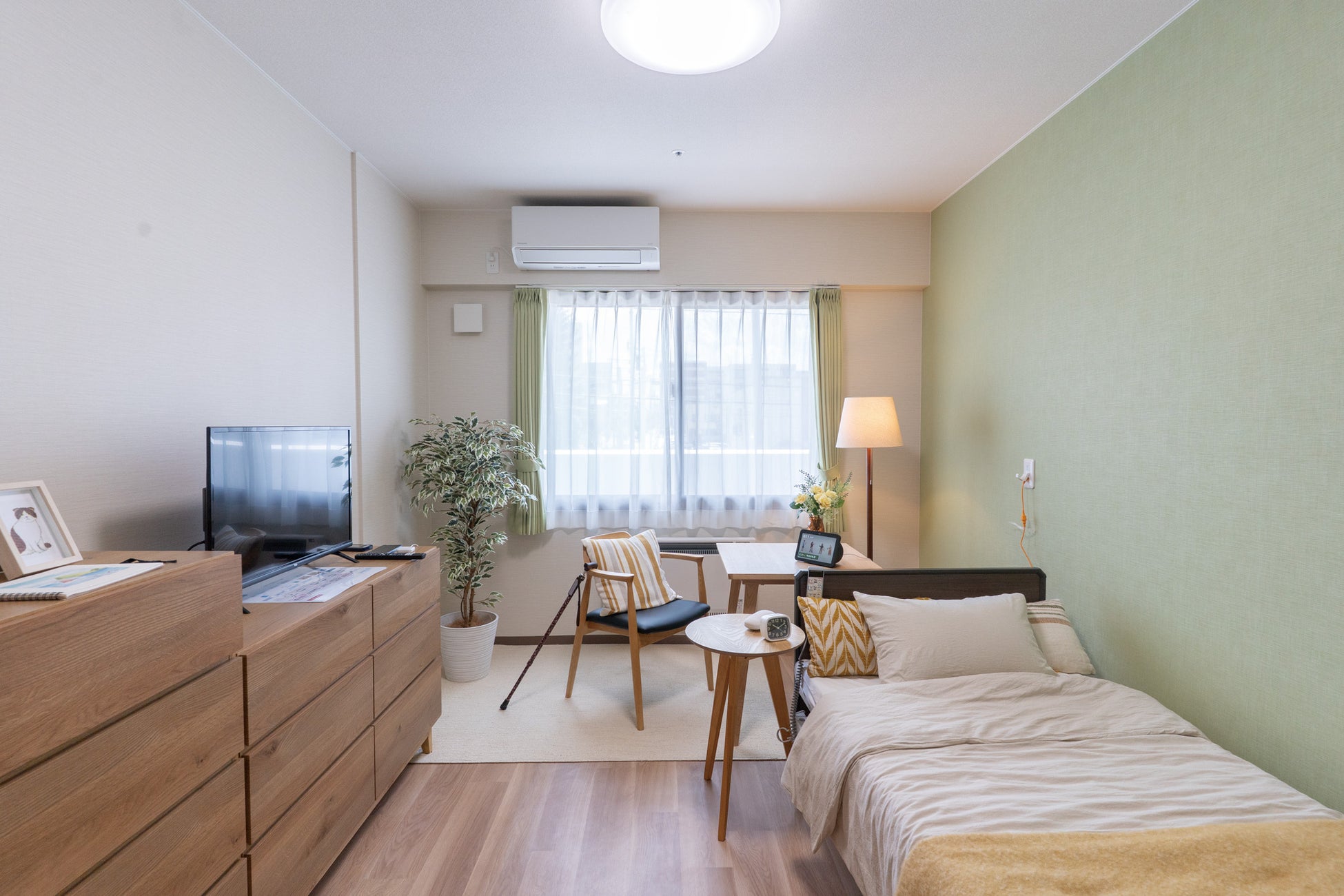 当施設では、介護スタッフとは別に「コンシェルジュ」を配置し、ご入居者様お一人おひとりの想いや状態に寄り添って各種レクリエーションを提案するなど、心のこもった対応をいたします。さらに、離れて暮らすご家族にも安心していただけるように、いつでもビデオ通話ができる音声対話システム「ボイスタ!(※2)」を全室に導入します。声で簡単に操作ができますが、コンシェルジュが丁寧にサポートします。