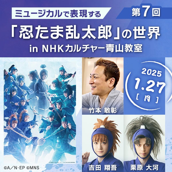 「ミュージカルで表現する『忍たま乱太郎』の世界」(略して「忍ミュ講座」)は2022年1月からNHKカルチャーで講座を実施してきました。ミュージカル「忍たま乱太郎」の魅力やウラ話などを演出の竹本さん、キャストの方に講座形式でお話いただきます。毎回、会場およびオンラインからの質問やコメントを受付、実際にライブで回答していきます。また大人気なのが事前に配布される楽譜や台本。講座内で一緒に歌うというコーナーもあるため限定で配布される貴重なもの。毎回のキャストやエピソードごとに内容が少しずつ違います。忍ミュを見た方には特に楽しんでいただける講座です。