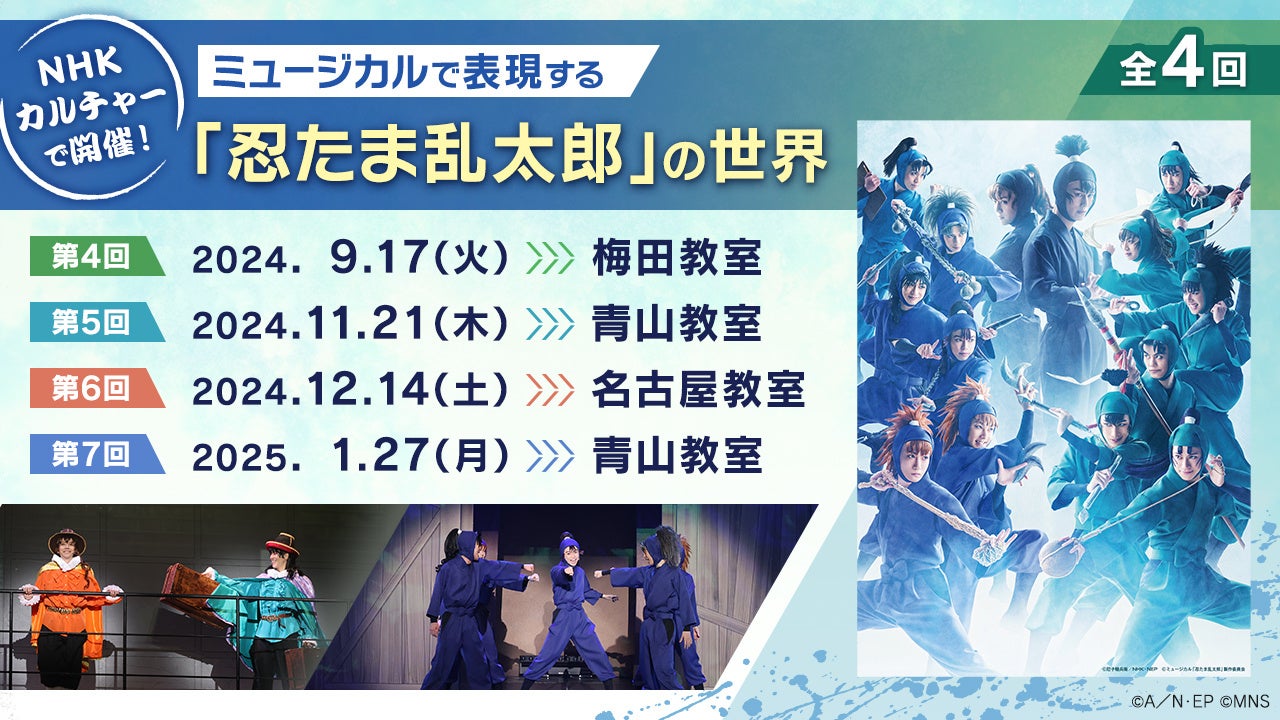 その“忍ミュ”をたっぷり楽しんでいただけるスペシャルな講座を今年も開催します。「ミュージカルで表現する『忍たま乱太郎』の世界」(略して「忍ミュ講座」)を2024年度は4回開催することが決定!これまで4回実施して、大好評だった講座です。