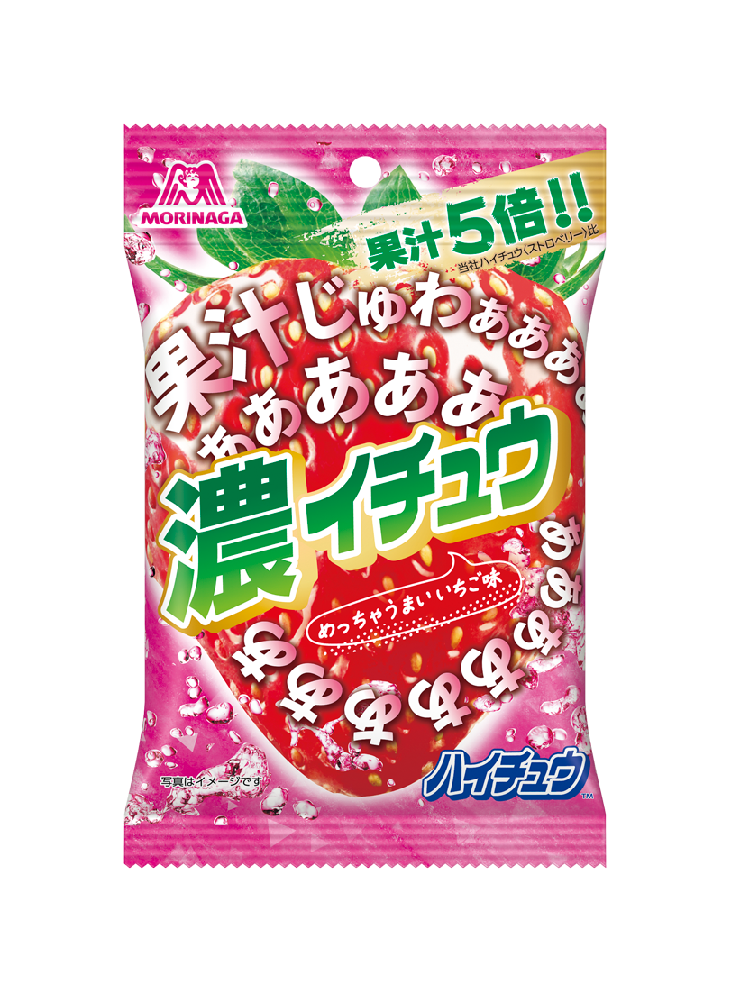 苺フレーバー菓子は毎年期間限定で発売しており、安定した人気でご好評をいただいています。今年は、定番品の「ハイチュウ<ストロベリー>」の5倍の果汁を使用した濃厚な味わいが特長の「濃イチュウ<いちご>」が新登場。さらに、毎年人気の「あまおう苺ケーキ」は今年はチョコデコレーションをあしらい、少し贅沢な気分を楽しめます。苺の旬に一足早く、様々な苺のお菓子を取り揃えお客様に季節の味わいを提供してまいります。