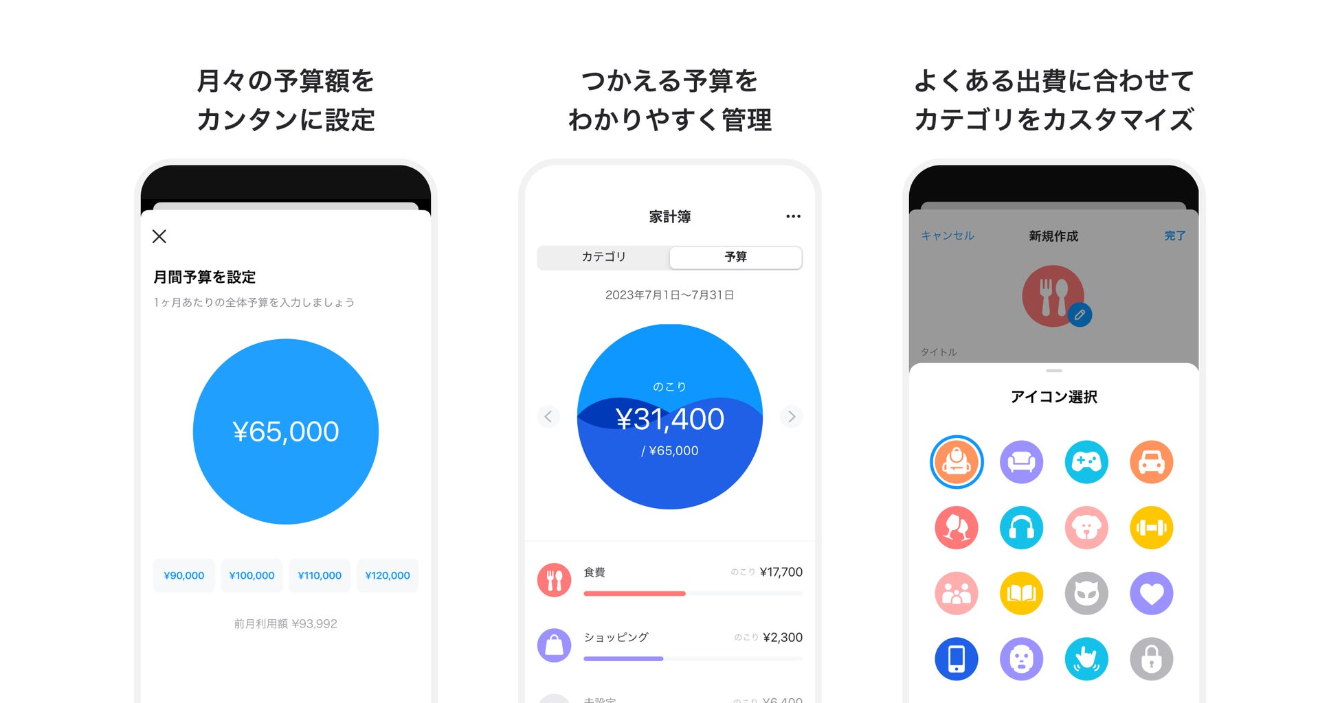 ・予算設定:ユーザーが集計期間の予算を月間 / カテゴリ別に設定できます
