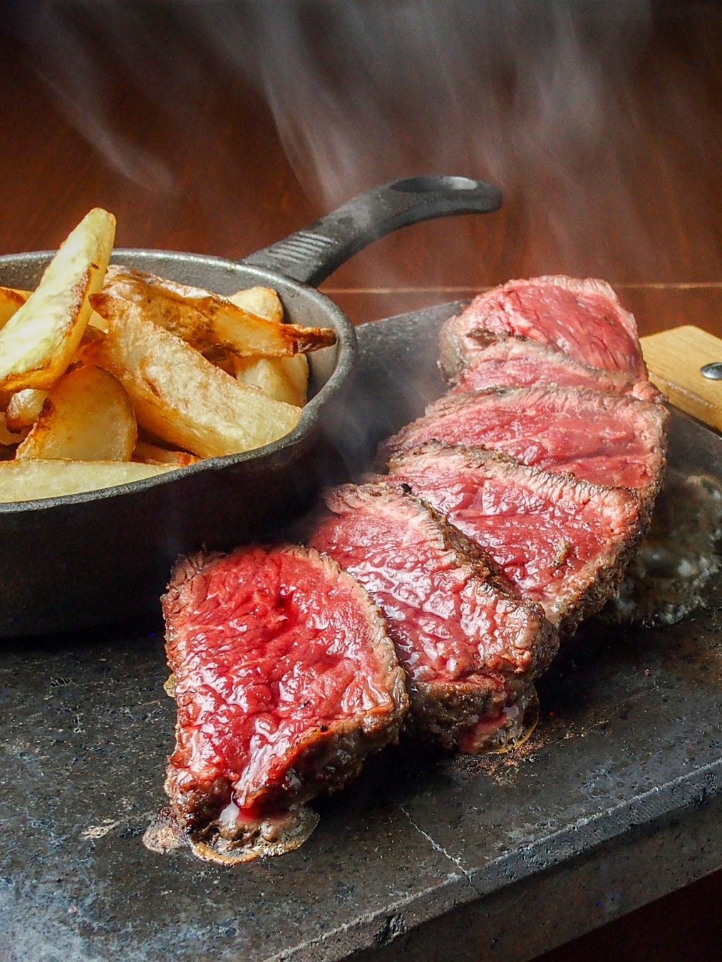 看板メニュー「ステック・フリット」は、旨味を閉じ込めた塊肉のステーキを、外国発信では珍しい