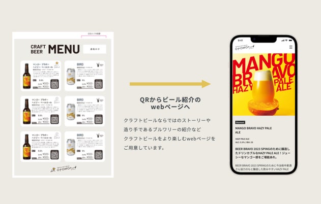 ビールメニューの中に、QRコードを付与することで、弊社のビール詳細ページにアクセスできるため、店舗でのクラフトビールの説明をサポートいたします。