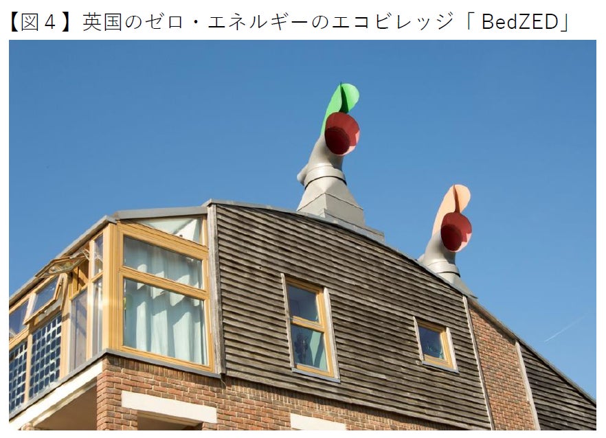 その先進事例が、2002年にロンドン南部ハックブリッジに完成した「Beddington Zero Energy Development 」(BedZED)です。【図4】
