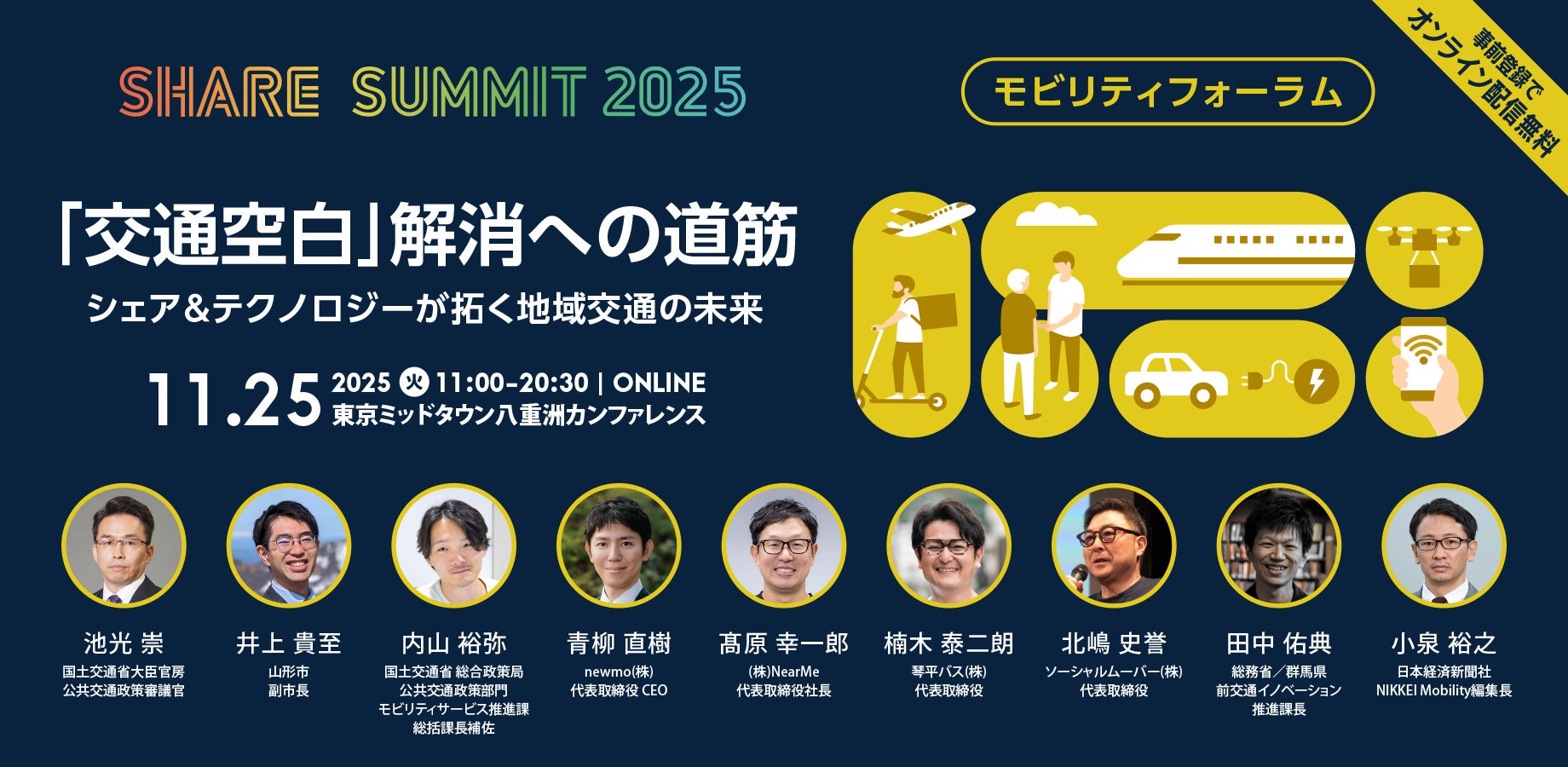 国交省「交通空白」解消本部 審議官、登壇決定!11月25日(火) 開催「モビリティフォーラム」の見どころ紹介 #シェアサミット2025