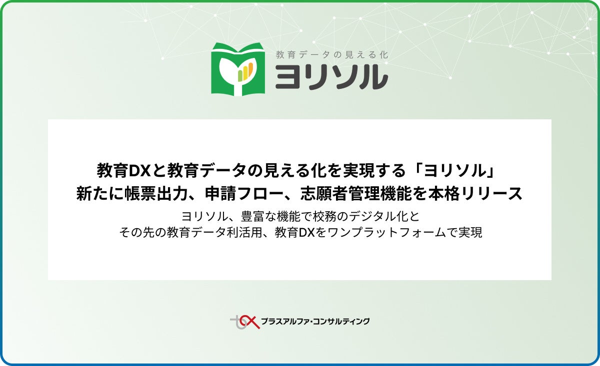 教育DXと教育データの見える化を実現する「ヨリソル」、新たに帳票出力、申請フロー、志願者管理機能を提供開始