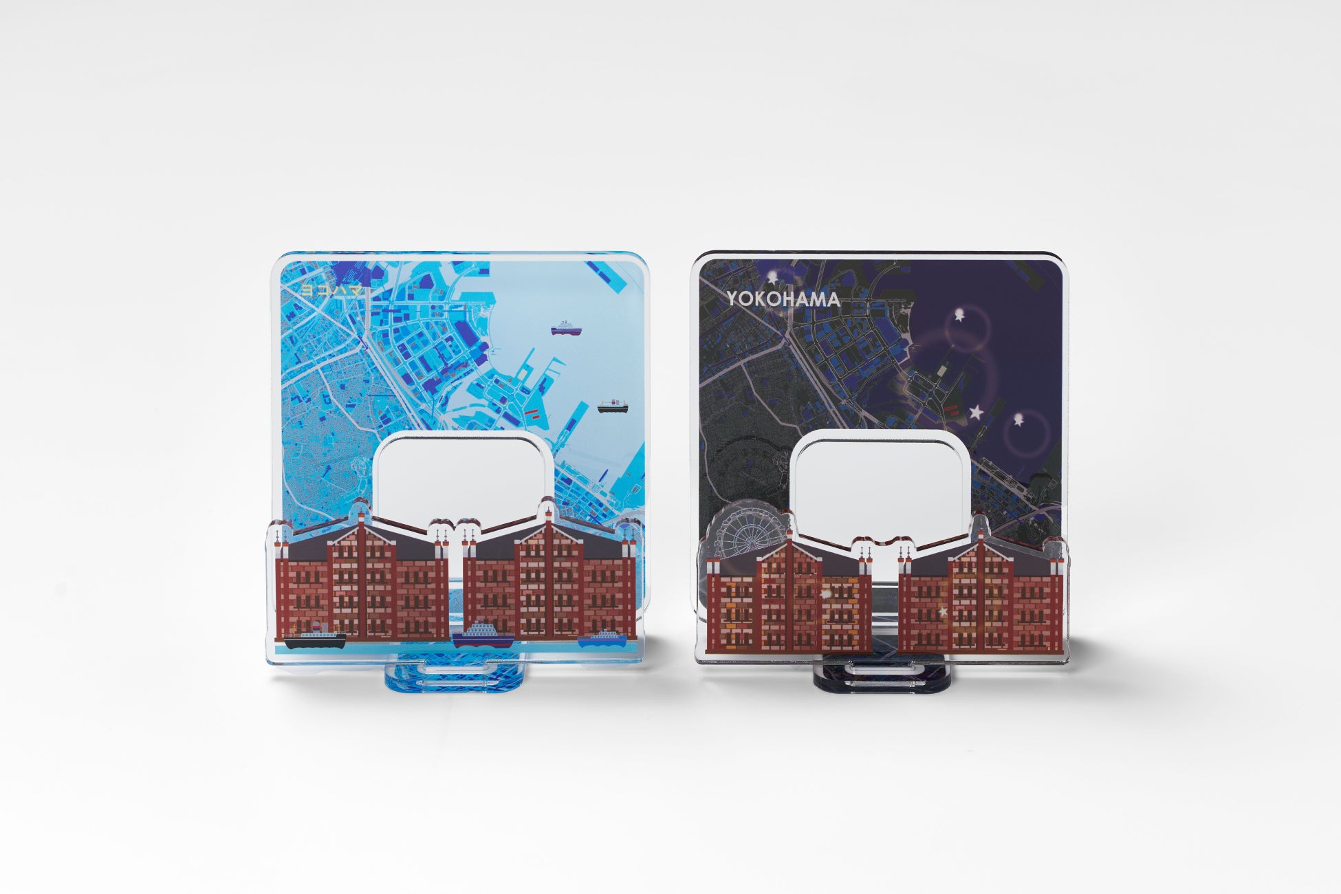 横浜は昼と夜でそれぞれ違う景色を楽しむことができる魅力的な観光地が多く存在していることから、本商品では、昼と夜のそれぞれの魅力が伝わるように、横浜を象徴する横浜赤レンガ倉庫のデザインをあしらっています。昼は横浜港をイメージしたさわやかな水色、夜は夜景をイメージしたシックな黒とネイビーの色合いでデザインしています。