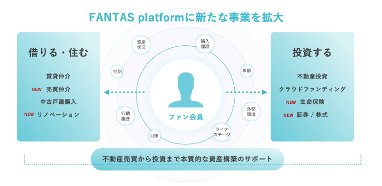 「FANTAS platform」の広がりで、当社は顧客の人生における多くの接点に関わり、より満足度の高い価値提供を行うことを目指します。これまで、不動産の話は不動産屋へ、お金の話は金融機関へ、と顧客がニーズごとに相談窓口を変えていた煩わしさを、不動産の話もお金の話も当社へまとめて相談することが可能となります。