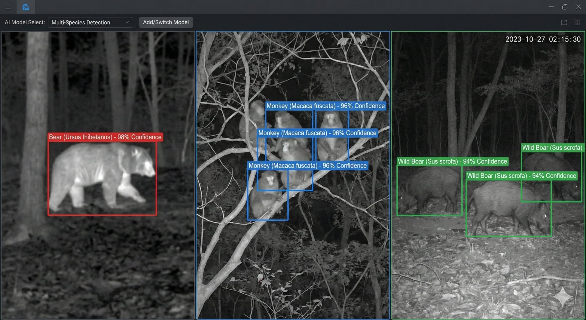 クマだけでなく、深刻な農作物被害を防ぐためのシカ、サルなどの検知にも役立ちます。