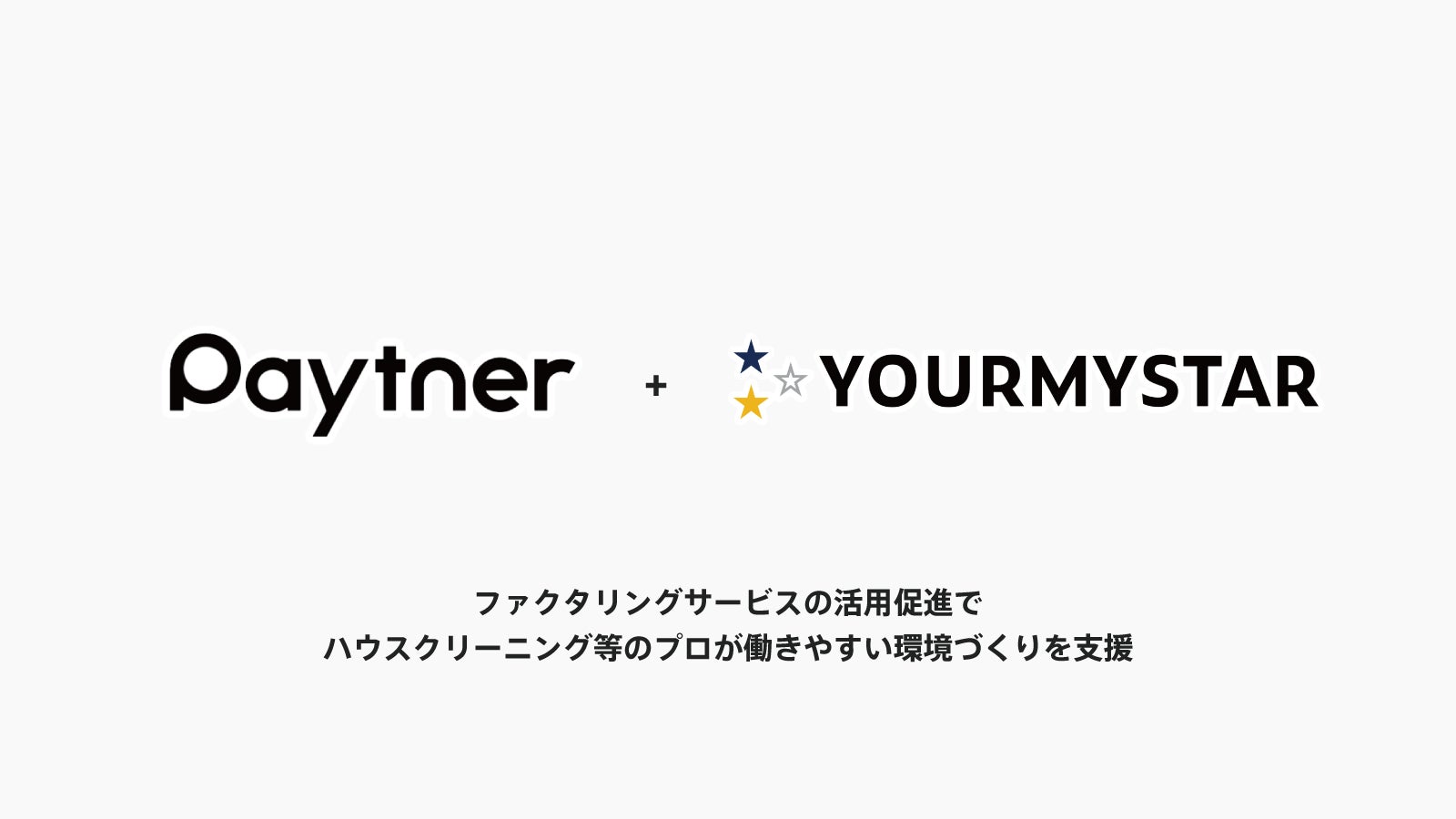 ハウスクリーニング・法人向け清掃や修理・お手入れのサービス産業をIT化する日本最大級のプラットフォーム「ユアマイスター」を運営するユアマイスター株式会社(本社:東京都世田谷区、代表取締役社長:星野貴之)は、オンライン型ファクタリングサービス「ペイトナー ファクタリング(旧先払い)」を提供するペイトナー株式会社(旧yup株式会社)(本社:東京都港区、代表取締役社長:阪井優、以下「ペイトナー(旧yup)」)と業務提携契約を締結したことをお知らせします。本業務提携に伴い、「ユアマイスター」に出店するパートナー事業者が「ペイトナー ファクタリング(旧先払い)」を利用する場合、サービス利用料(申請金額の10%)を通常利用料から1%引きとなる申請金額の9%で利用することができます。