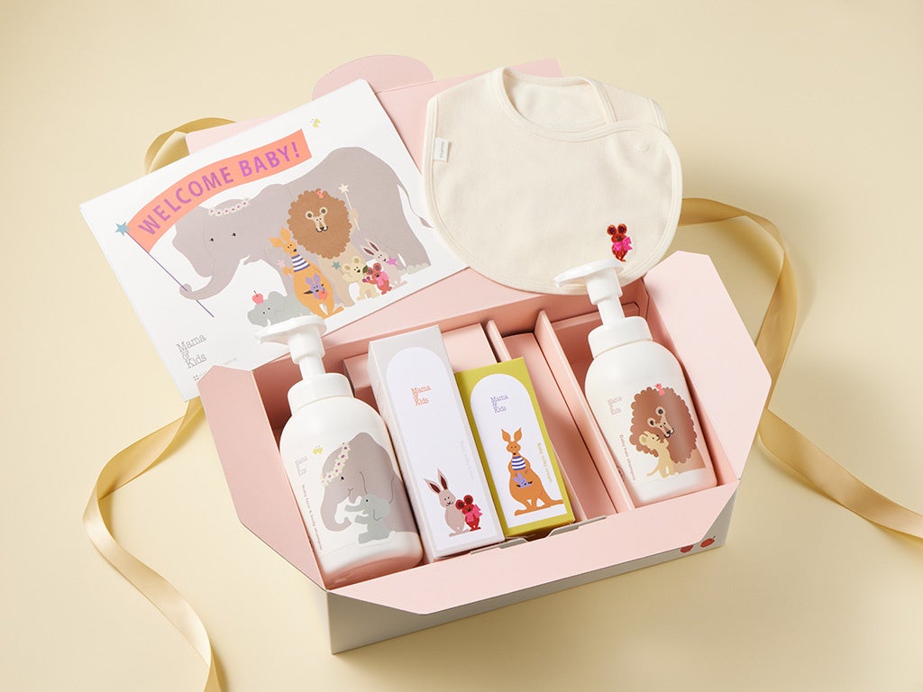 柔らかいふわふわ泡で洗える「ベビー全身シャンプー」や「ベビーヘアシャンプー」、大人気の「ベビーミルキーローション」のほか、持ち運びにも便利なミニサイズの「ベビーミルキークリーム」という4品をセット。可愛いギフトボックスにも注目です。