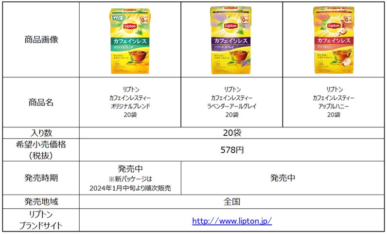 カフェインレスティーのカテゴリーは、コロナ禍を経て健康志向や睡眠の質を求める人のニーズの高まりや、おうち時間が長くなったことなども後押しとなり、継続的に成長を続けています。「リプトン カフェインレスティー オリジナルブレンド」は2018年に発売を開始以来、カフェインレスでも紅茶本来の味わいや香りを、時間やシーンを気にせず楽しめるカフェインレスティーとして、ヘルシーなライフスタイルを求める人などから高い支持を得てきました。