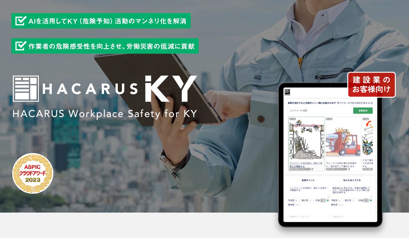 製品詳細URL:https://hacarus.com/ja/services/workplace-safety/ky/