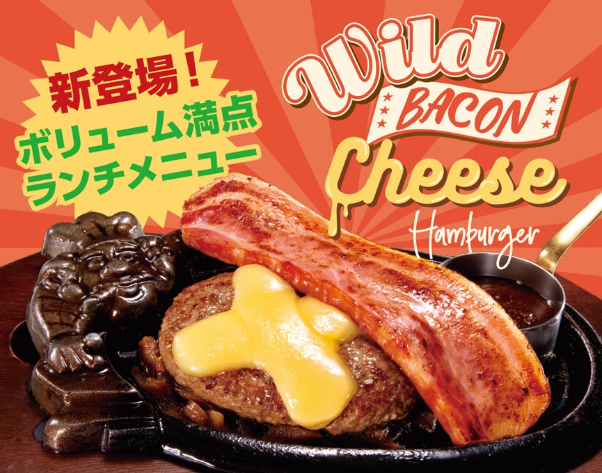 熱々の鉄板に大迫力のベーコンと、とろ~りチーズハンバーグ!『ワイルドベーコンチーズハンバーグ』を6月23日(金)からランチタイム限定で提供開始