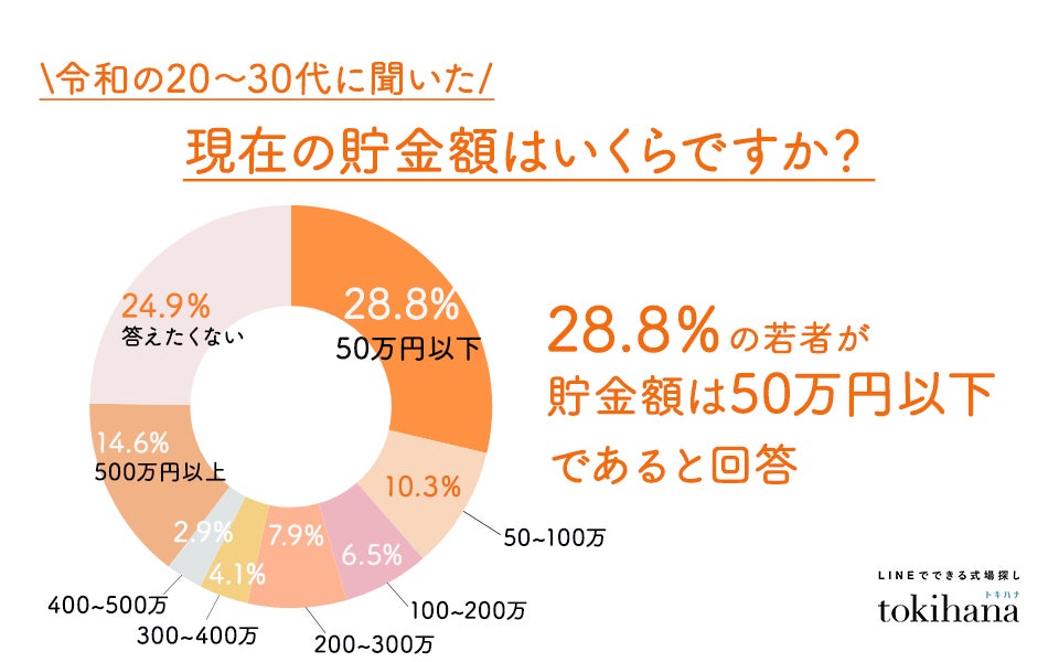 LINEでできる式場探し「トキハナ」が、20〜30代の可処分所得や貯金などの“お金と結婚”の関係性を緊急調査!