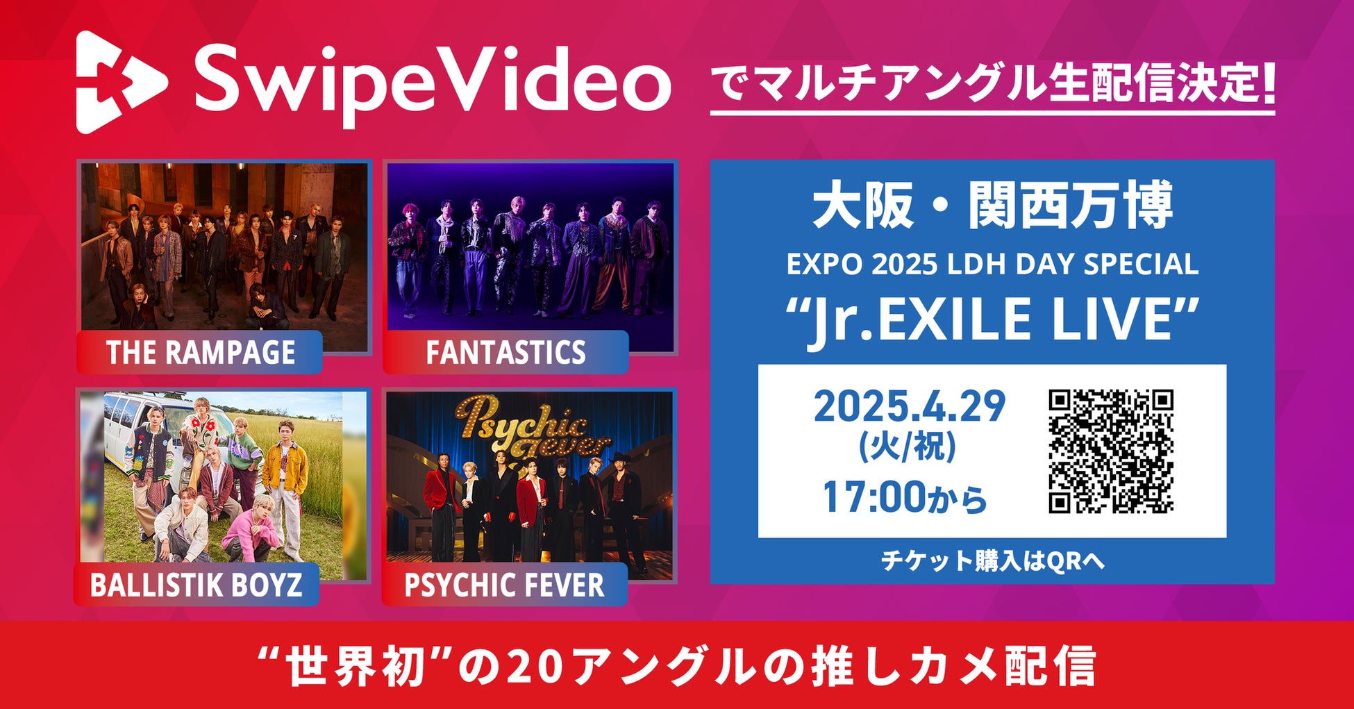 大阪・関西万博「EXPO 2025 LDH DAY SPECIAL “Jr.EXILE LIVE”」(4月29日開催)をSwipeVideoでマルチアングル生配信決定!