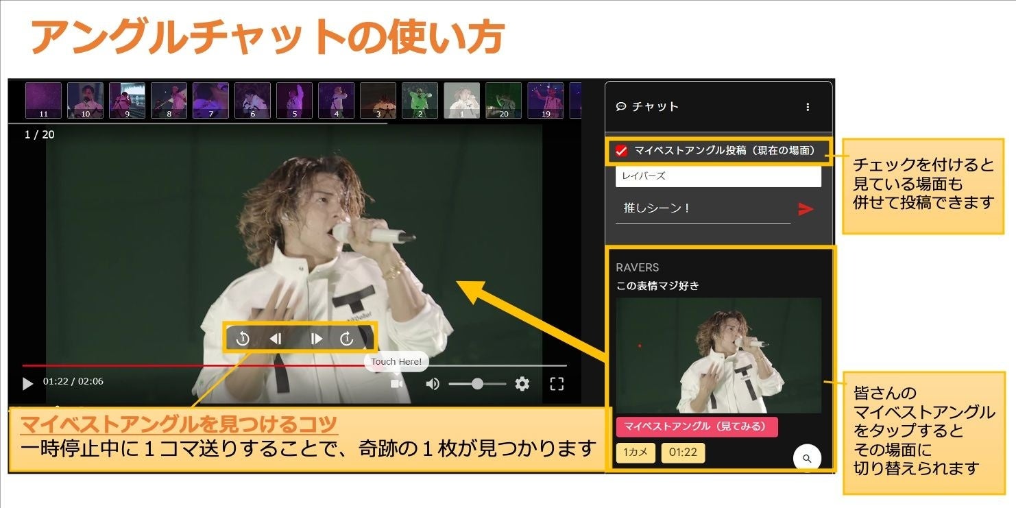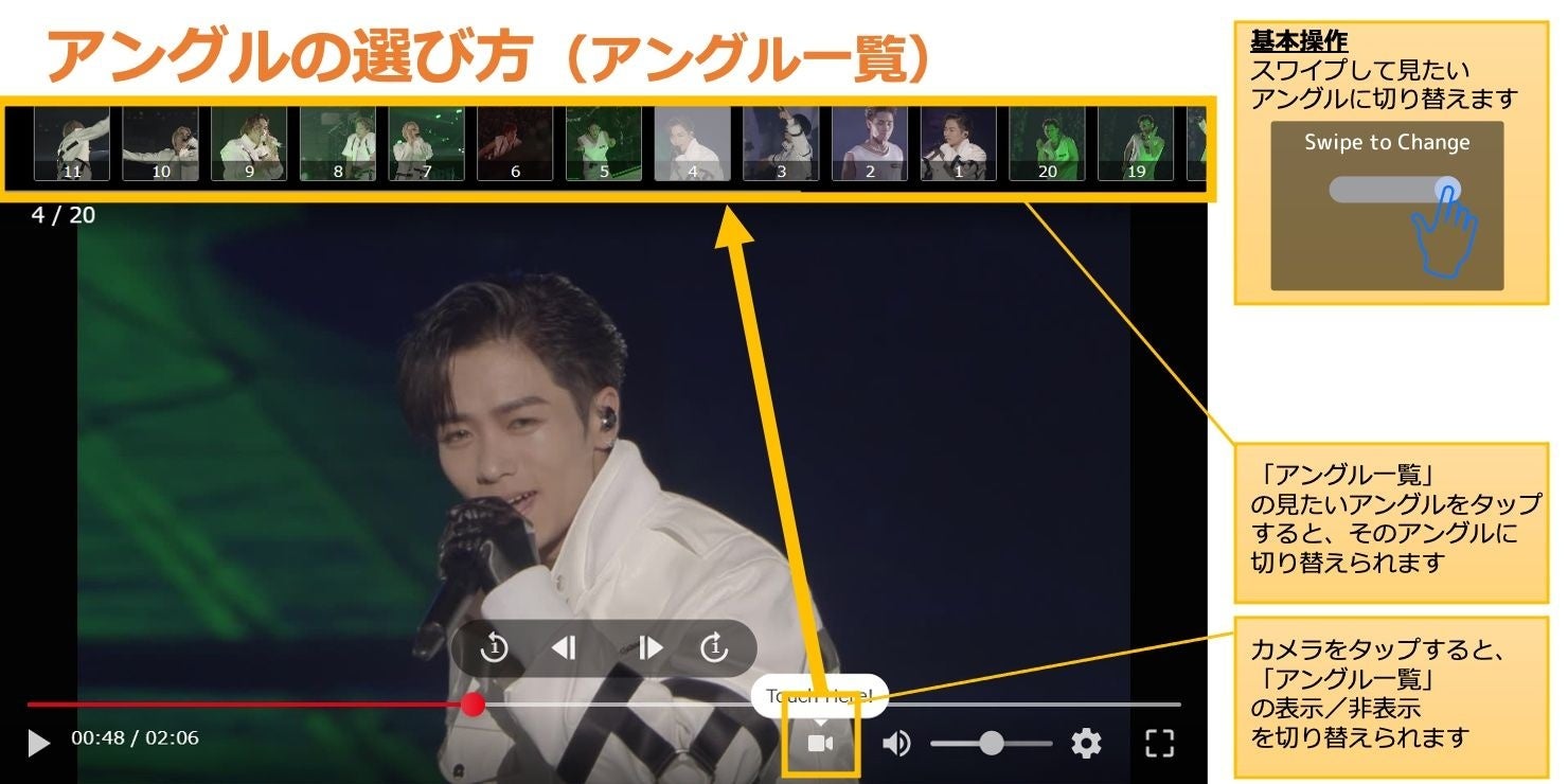 ※各アーティストを個別に撮影および配信をする「推しカメ」を含めた合計20アングルを、SwipeVideoにて視聴者が任意にアングルを切り替えて視聴できる配信は世界初となります。(2025年4月現在)